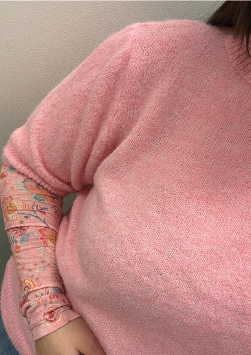 Marta Du Chateau striktrøje i en flot lyserød farve i den skønneste bløde kvalitet, som føles yderst behagelig at have på.