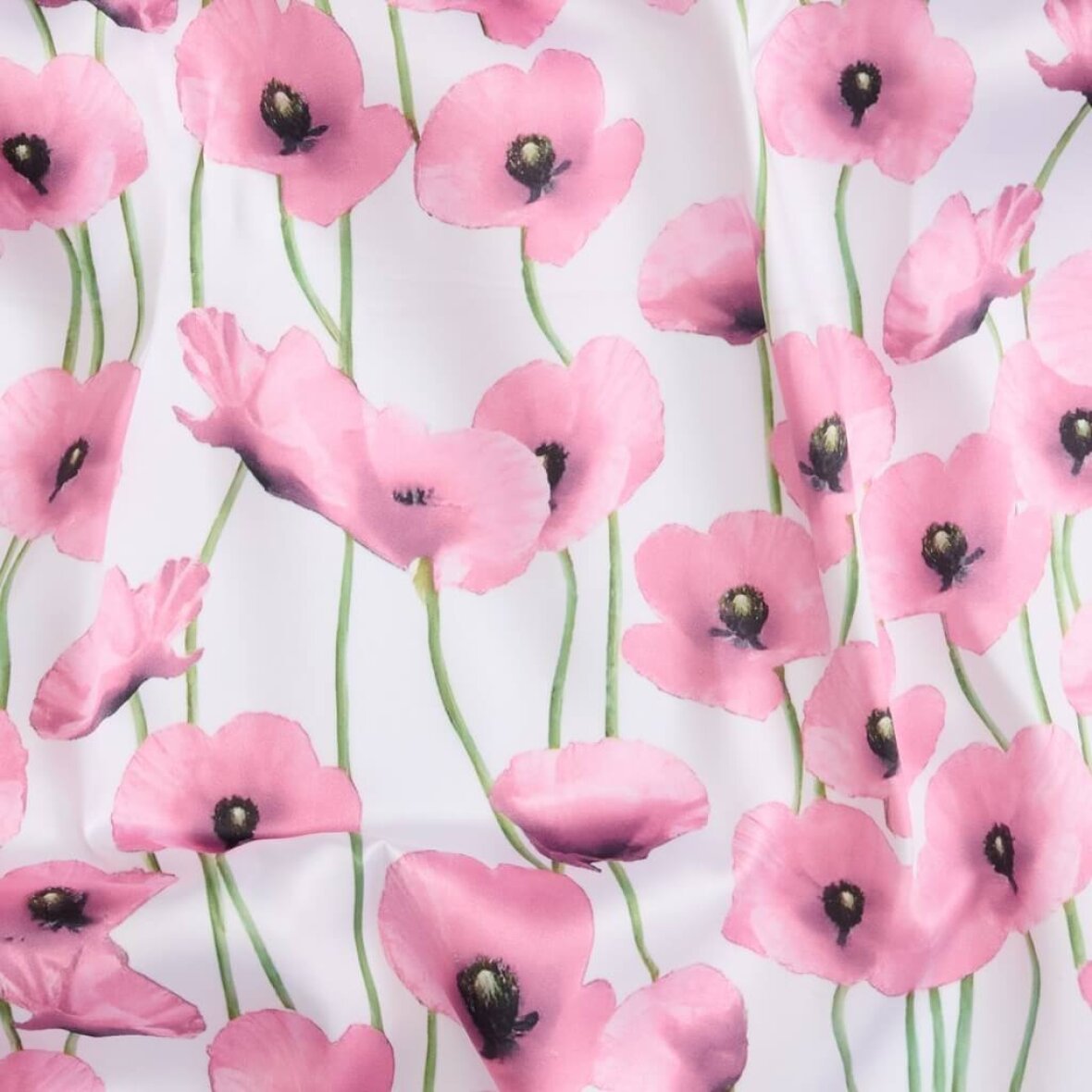Tørklædet er i et smukt lyserød blomstret print i et enkelt og elegant design.