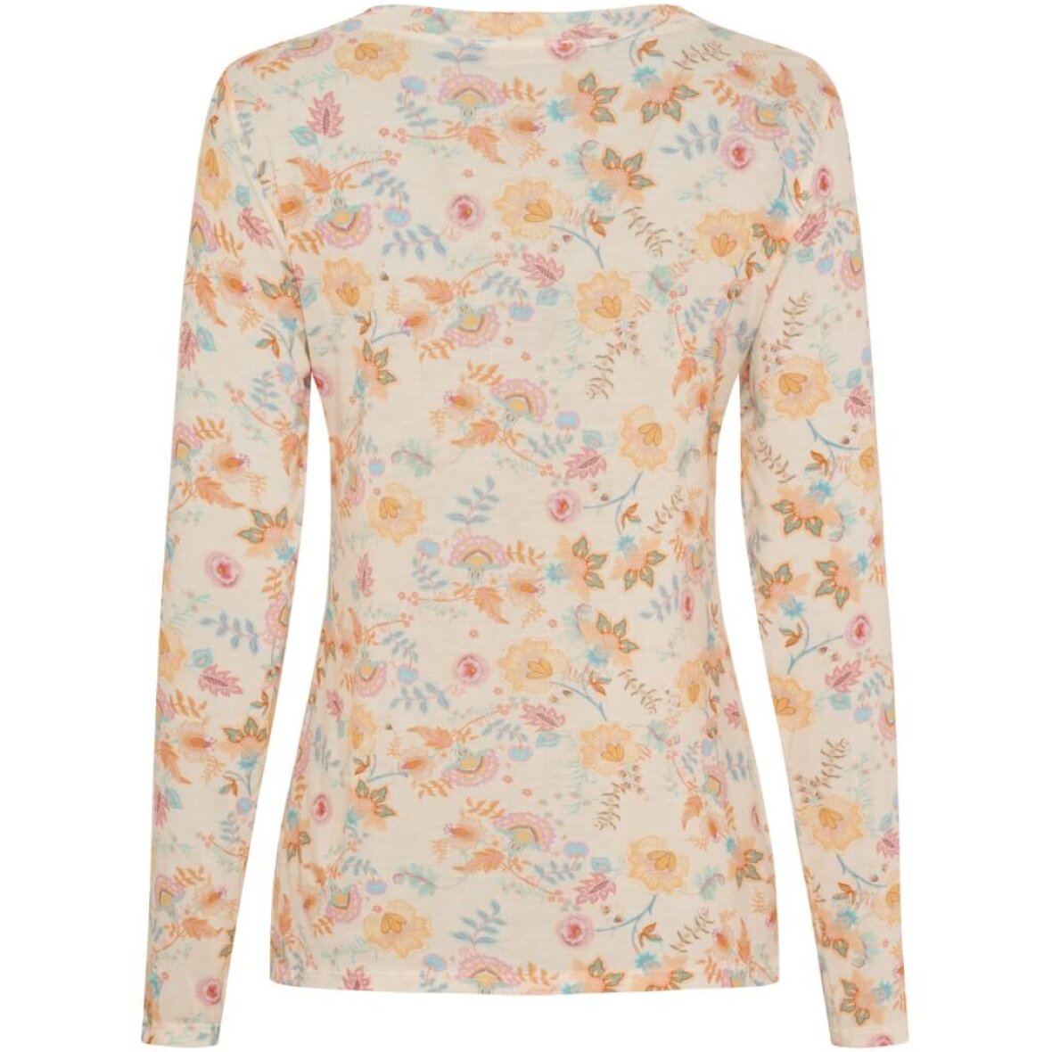 Marta Du Chateau langærmet t-shirt / bluse i en farverig beige/gullig farve med et multifarvet blomsterprint.