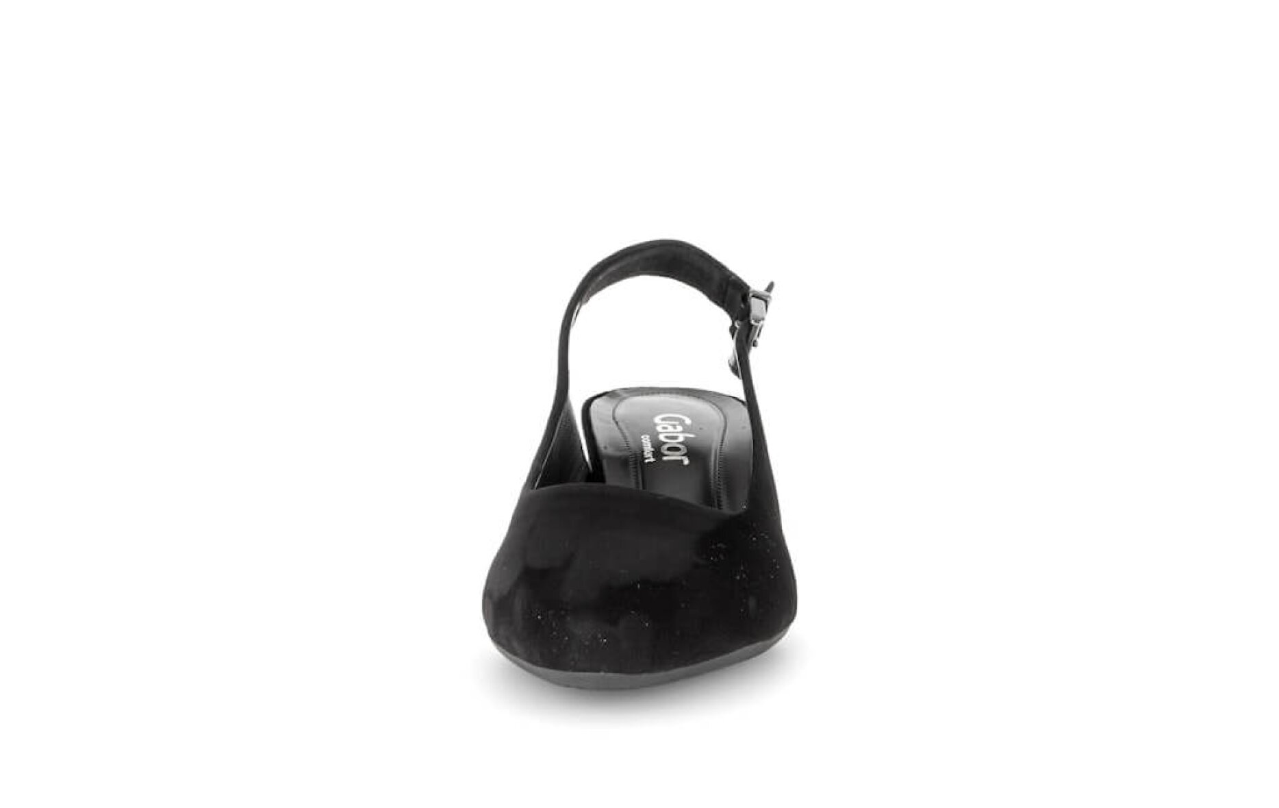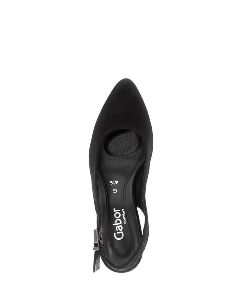 Gabor pumps i et elegant og tidløst design, som kan bruges til enhver festlig anledning. Den højhælede sko er udført i sort ruskind som lukkes med ankelrem med spændeluk.