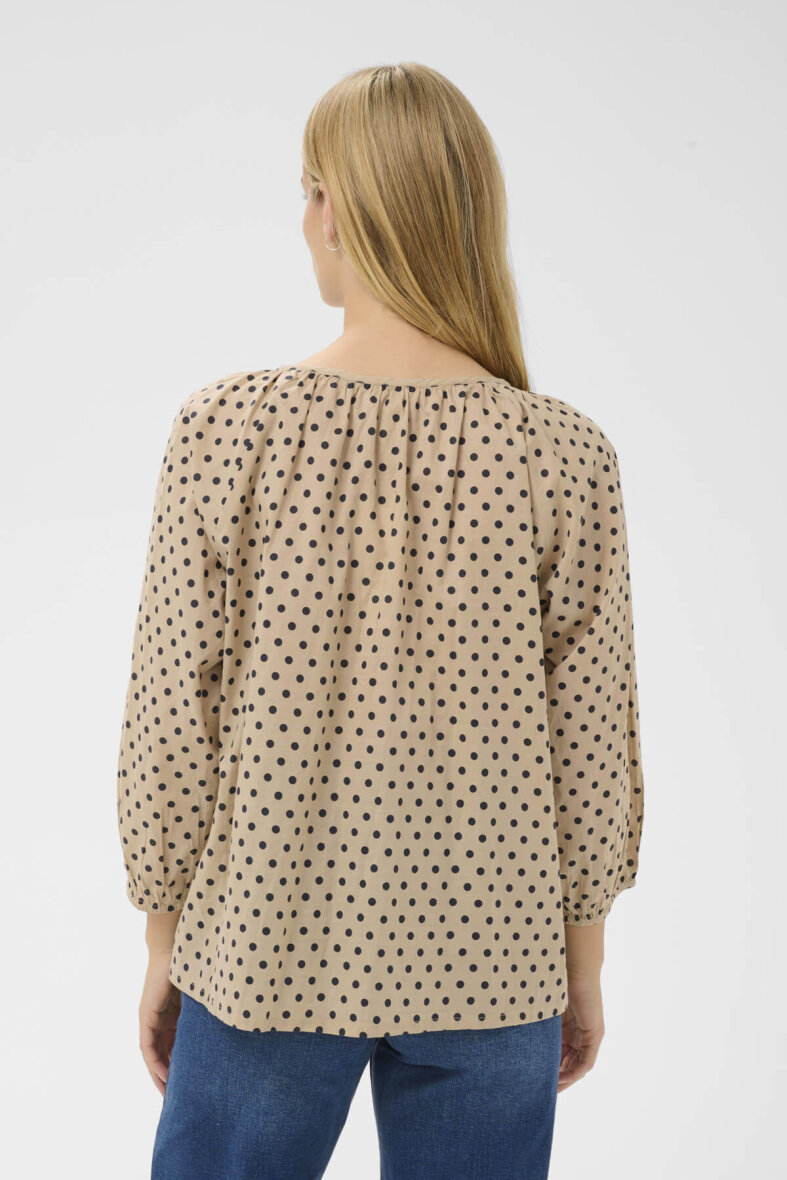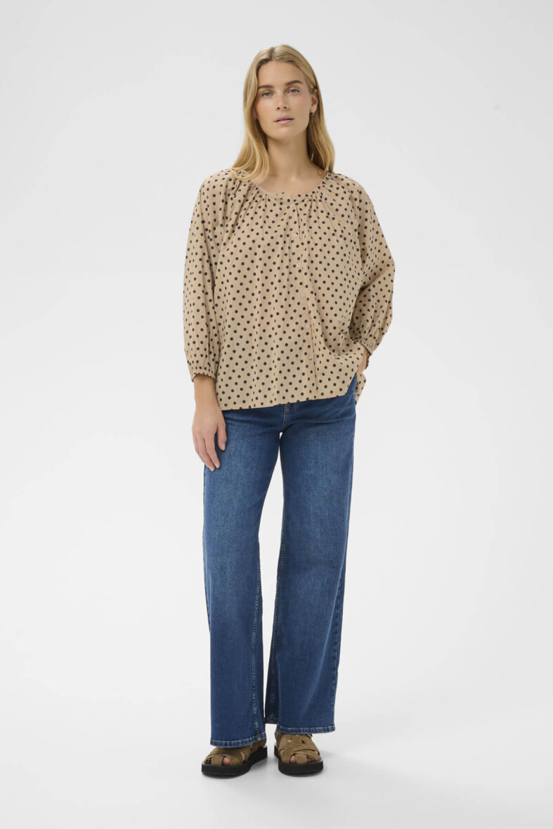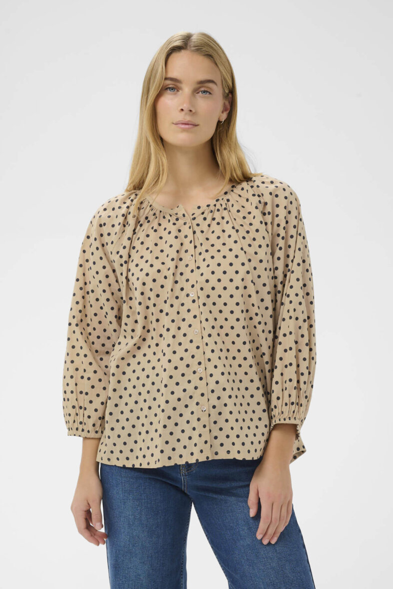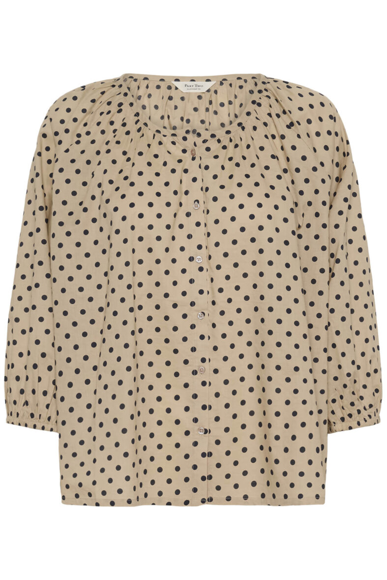 Part Two skjorte i en flot lysebrun farve og et moderne sort prikket mønster.