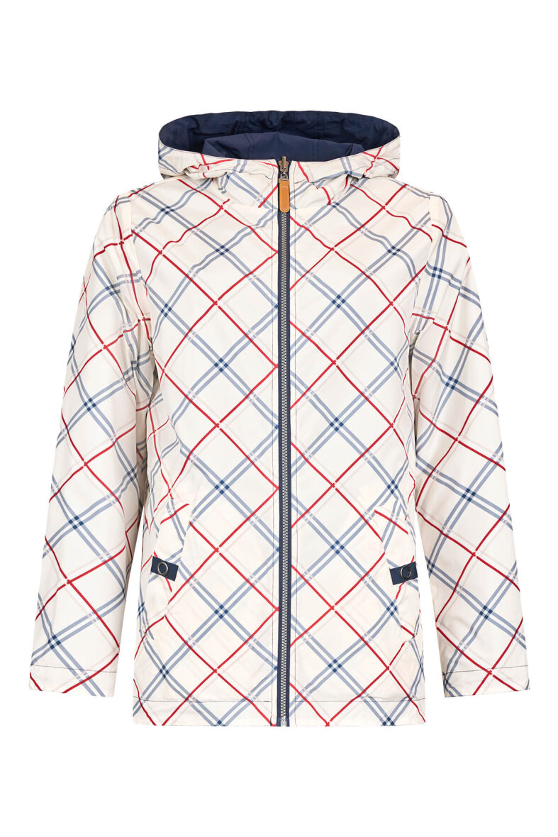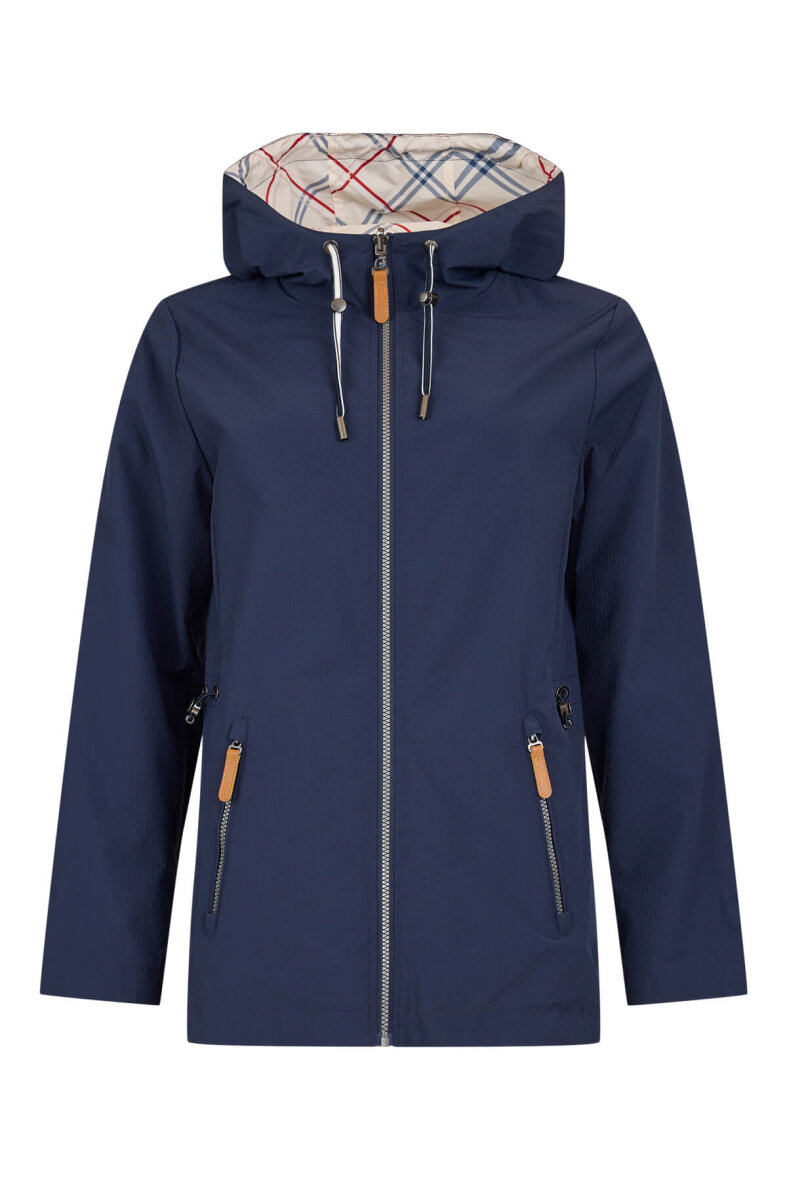 Smart vendbar damejakke fra Frandsen i en flot marine blå farve på den ene side og et lyst ternet mønster når man vender jakken med vrangen ud. Et fedt multi design, som gør det muligt at skabe forskellige look med samme behagelig Frandsen jakke.