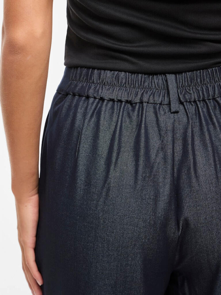 Det glatte materiale falder pænt langs benene og giver et sofistikeret look – perfekt til kontoret, middage eller en stilfuld hverdagsgarderobe.