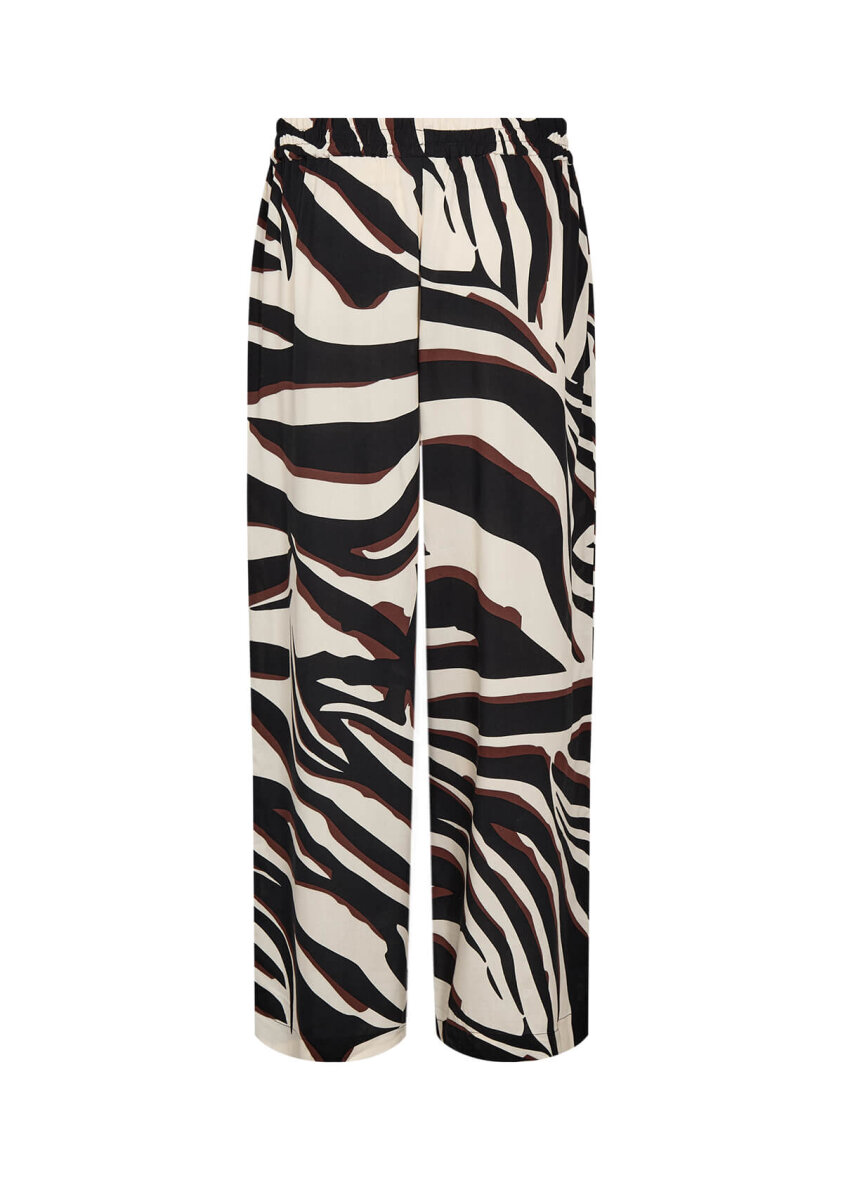 Wasabiconcept buks i et stilfuldt zebrastribet print i sort, brun og beige farvekombination.