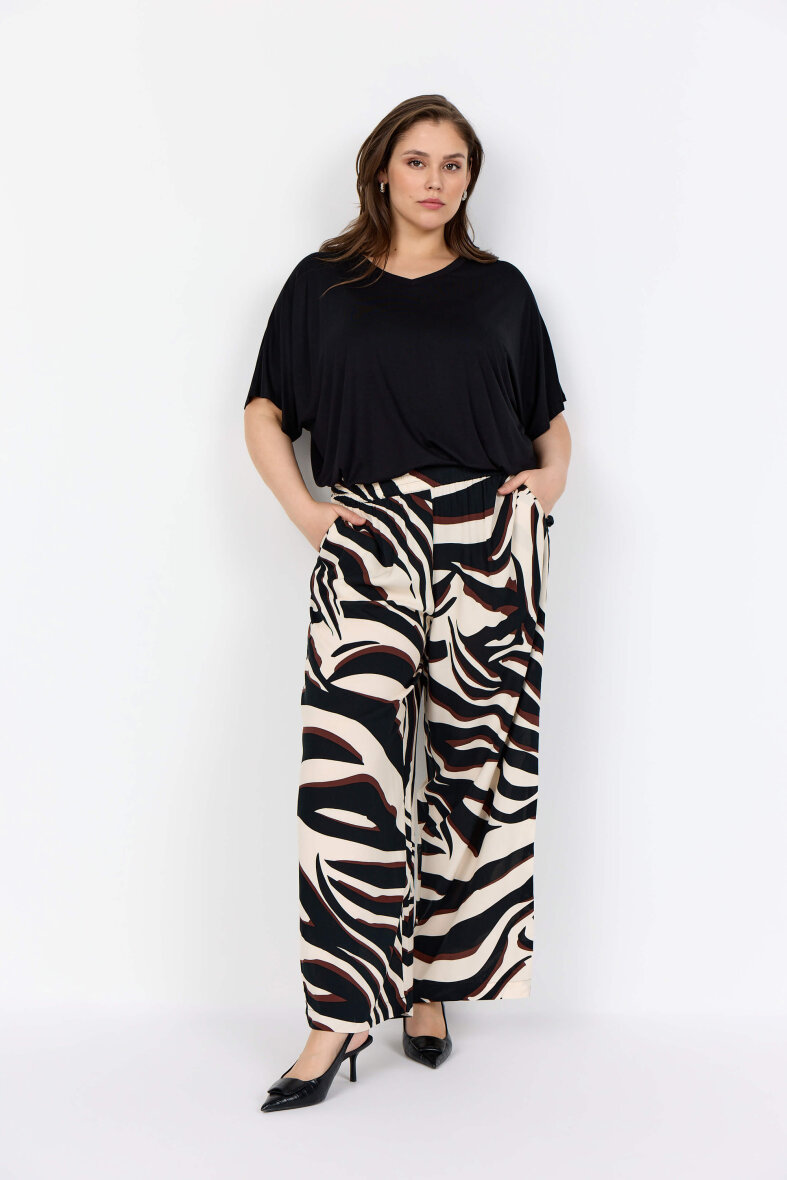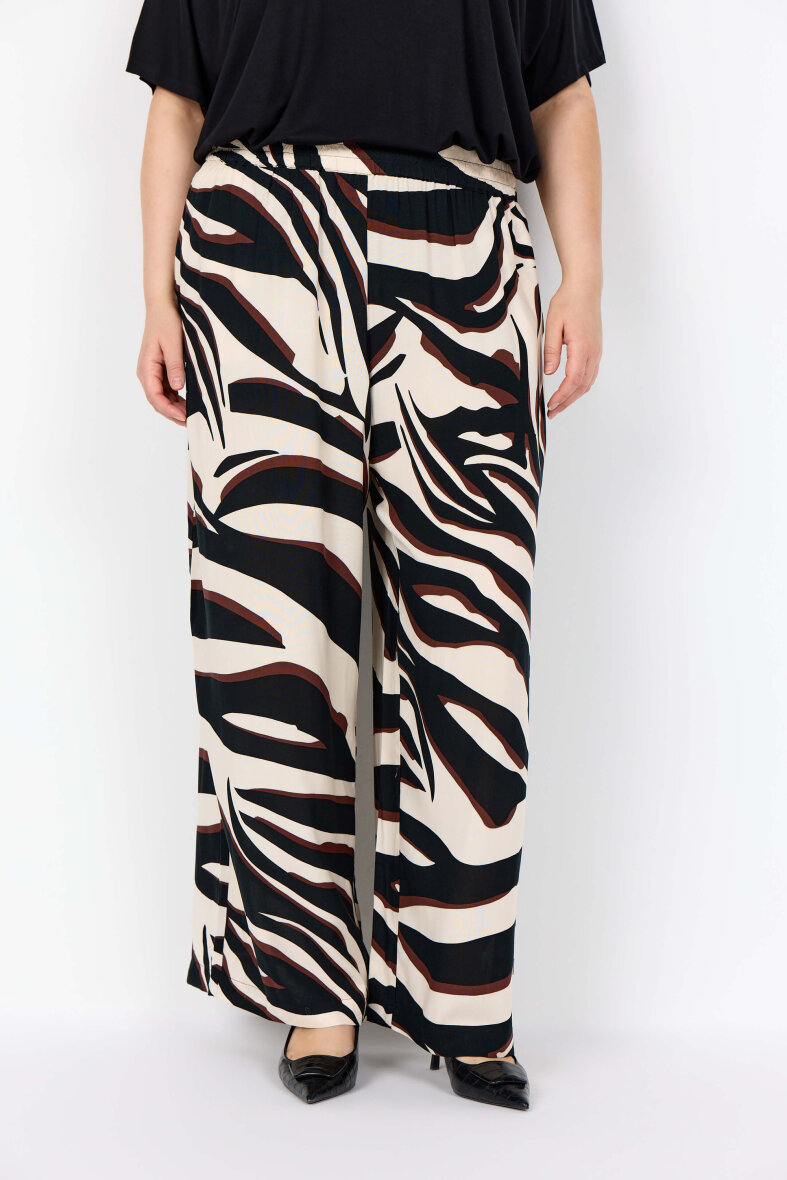 Buksen er lavet i en let og behagelig viskose kvalitet, som nemt styles med ensfarvet overdele for at give buksen et iøjefaldende fokus.