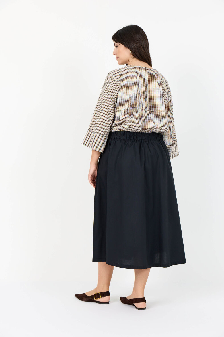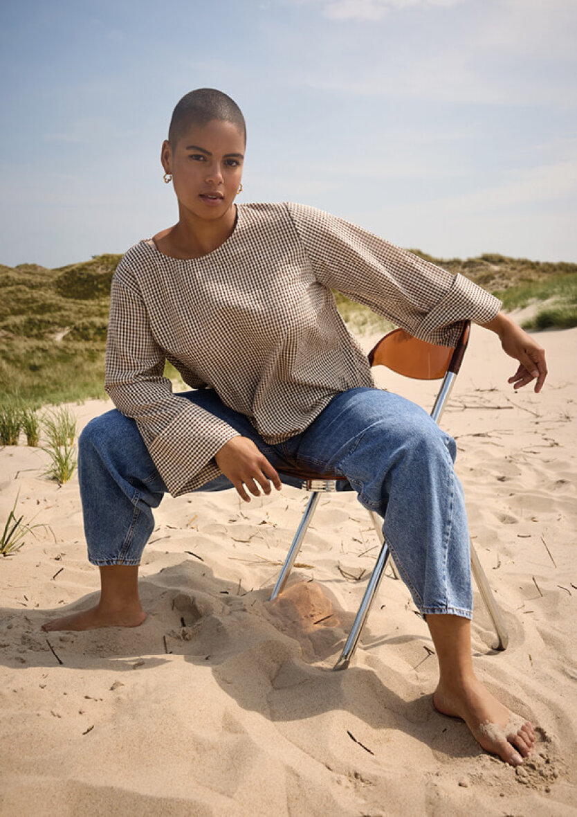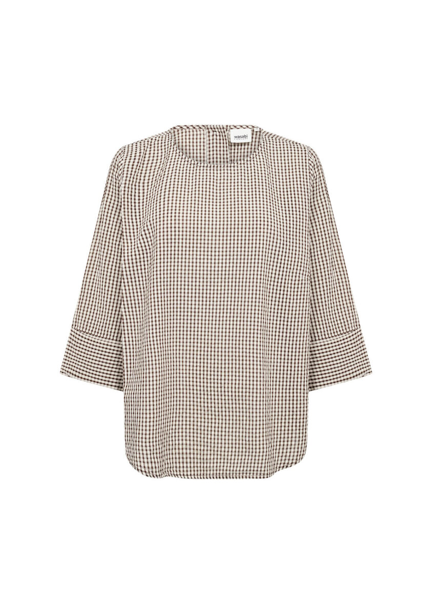Wasabiconcept bluse i et tidsløst ternet mønster i brune toner. Saina blusen er lavet i en let kvalitet af 100% økologisk bomuld.