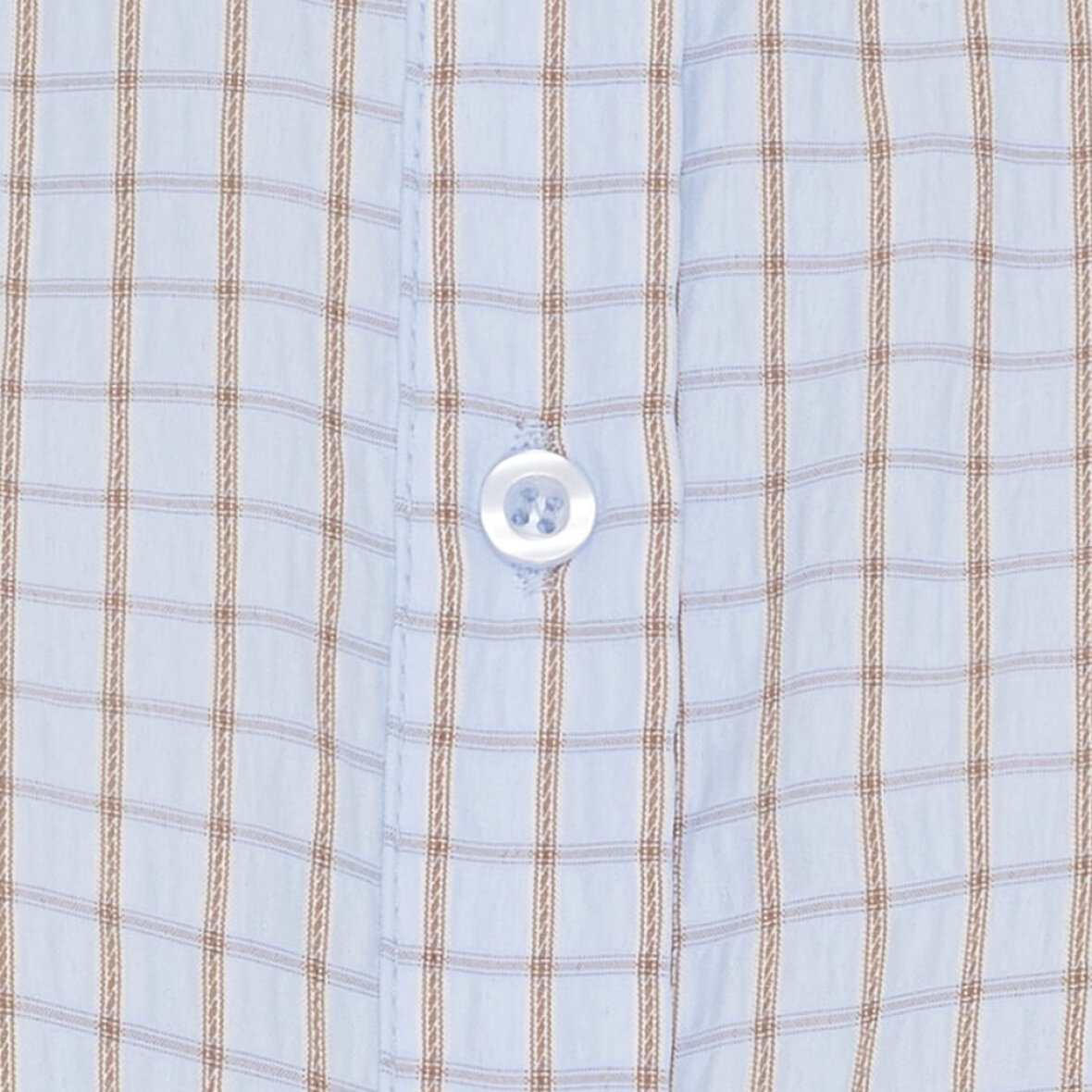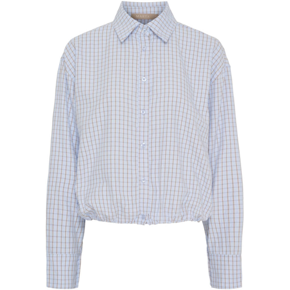 Marta Du Chateau skjorte i en flot lyseblå farve med et moderne ternet mønster med brune striber, som giver en flot kontrast til den lyseblå farve.