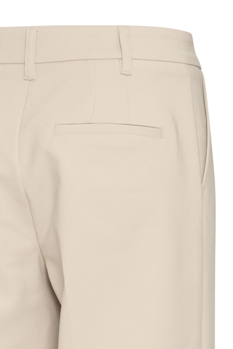 Bindy buksen lukkes med knapluk, lynlås og hægtelås for et glat udtryk. Buksen er med bæltestroppe, åbne lommer og pyntelommer.