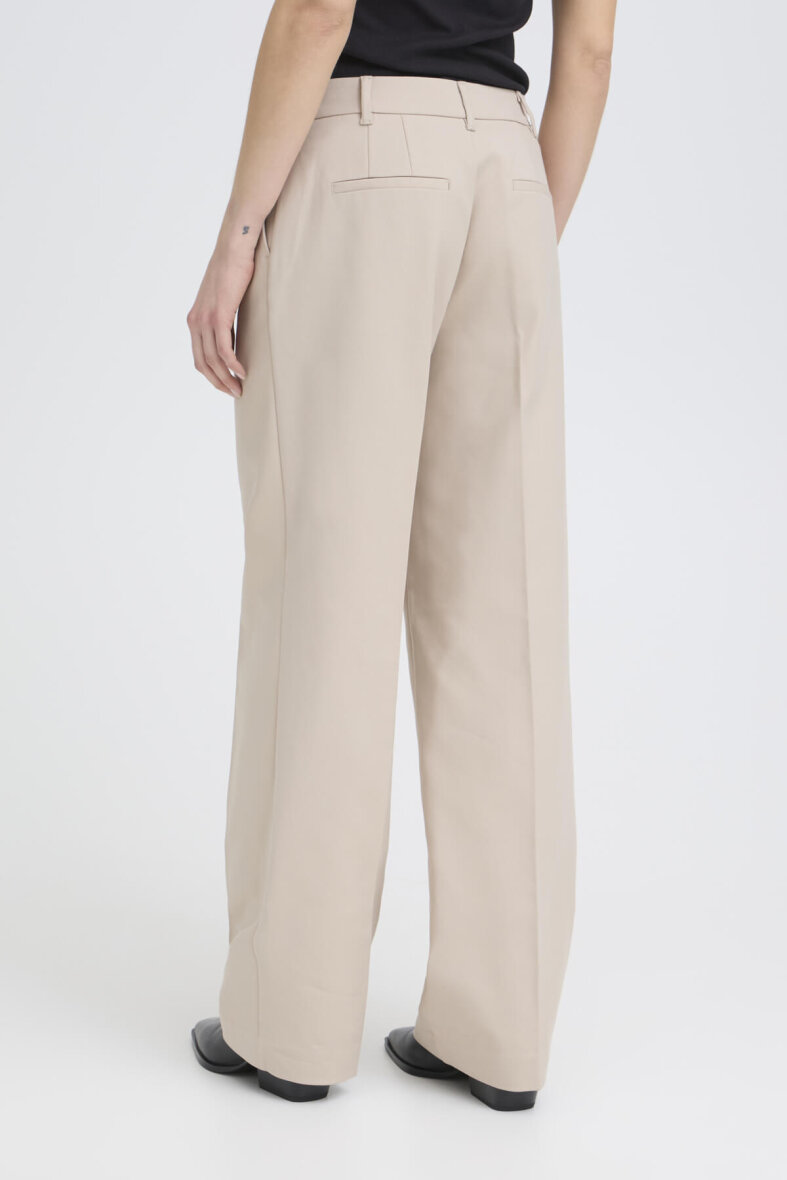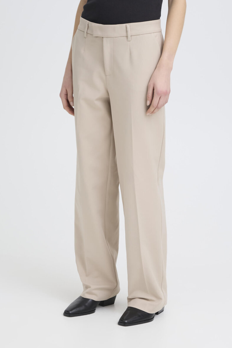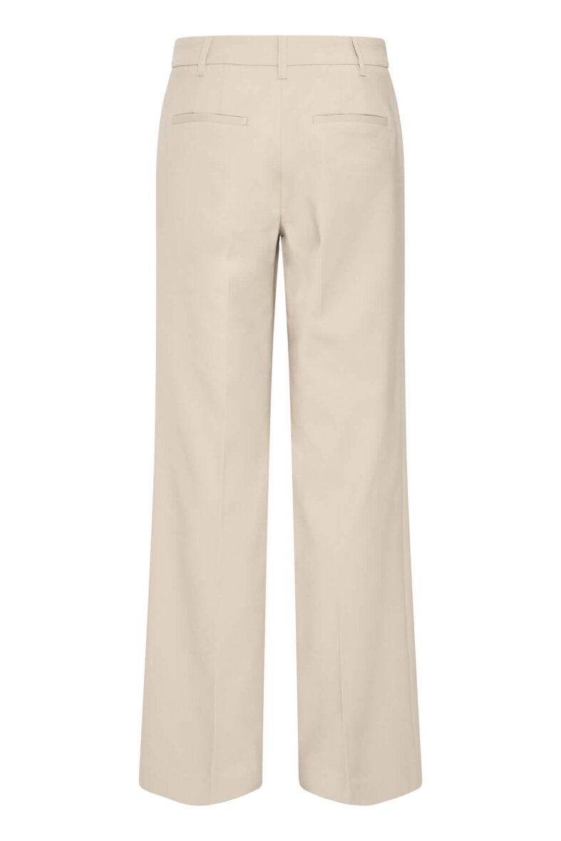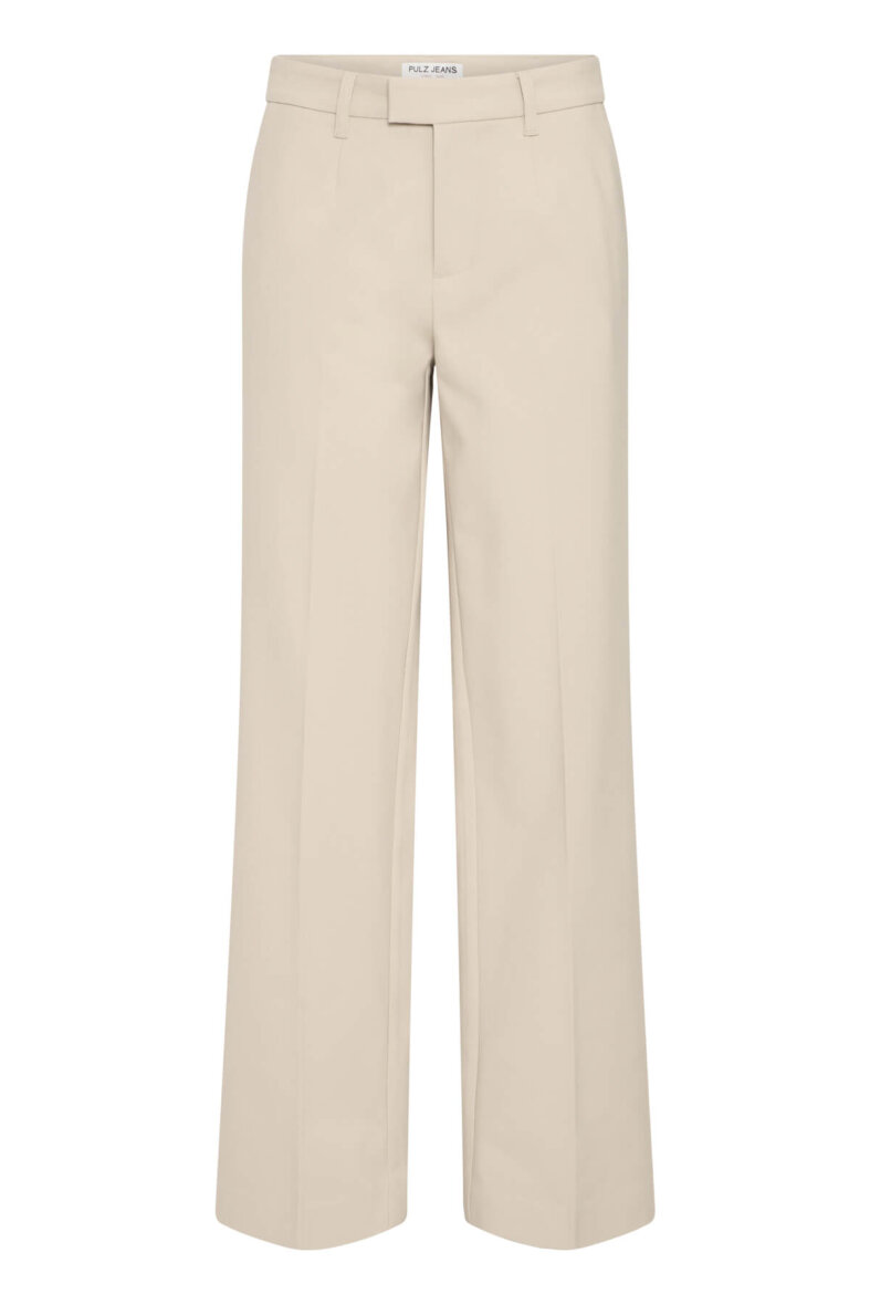 Pulz Jeans i modellen BINDY. En lys beige buks i farven Cashmere med et moderne bredt snit på buksebenet og højtalje.