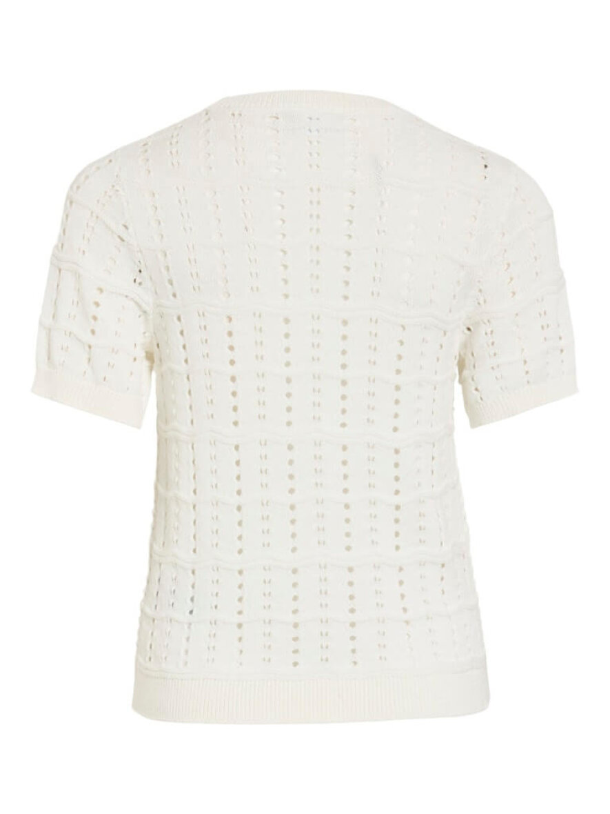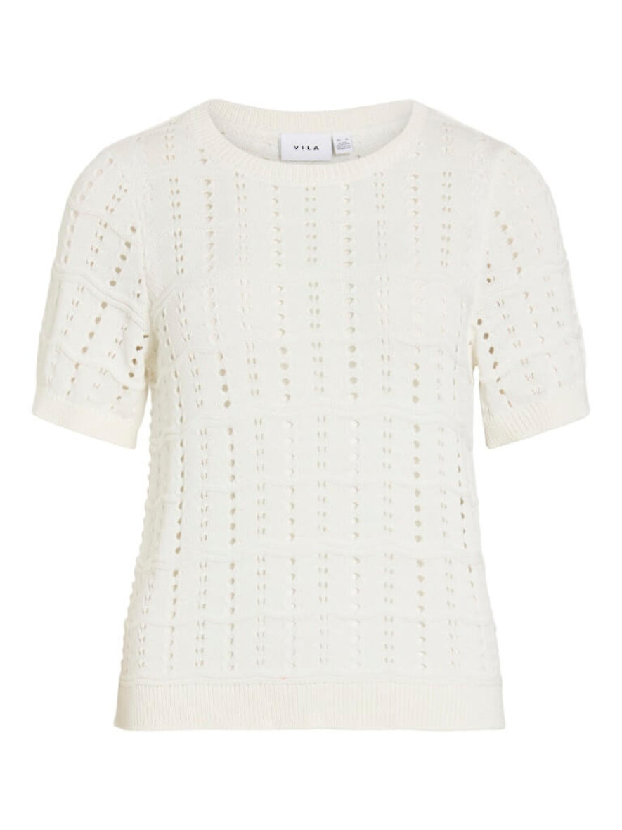 VILA strik i et feminint og tidsløst design i en klassisk hvid farve med et smukt vævet hulmønster og buede detaljer, som giver struktur til designet.