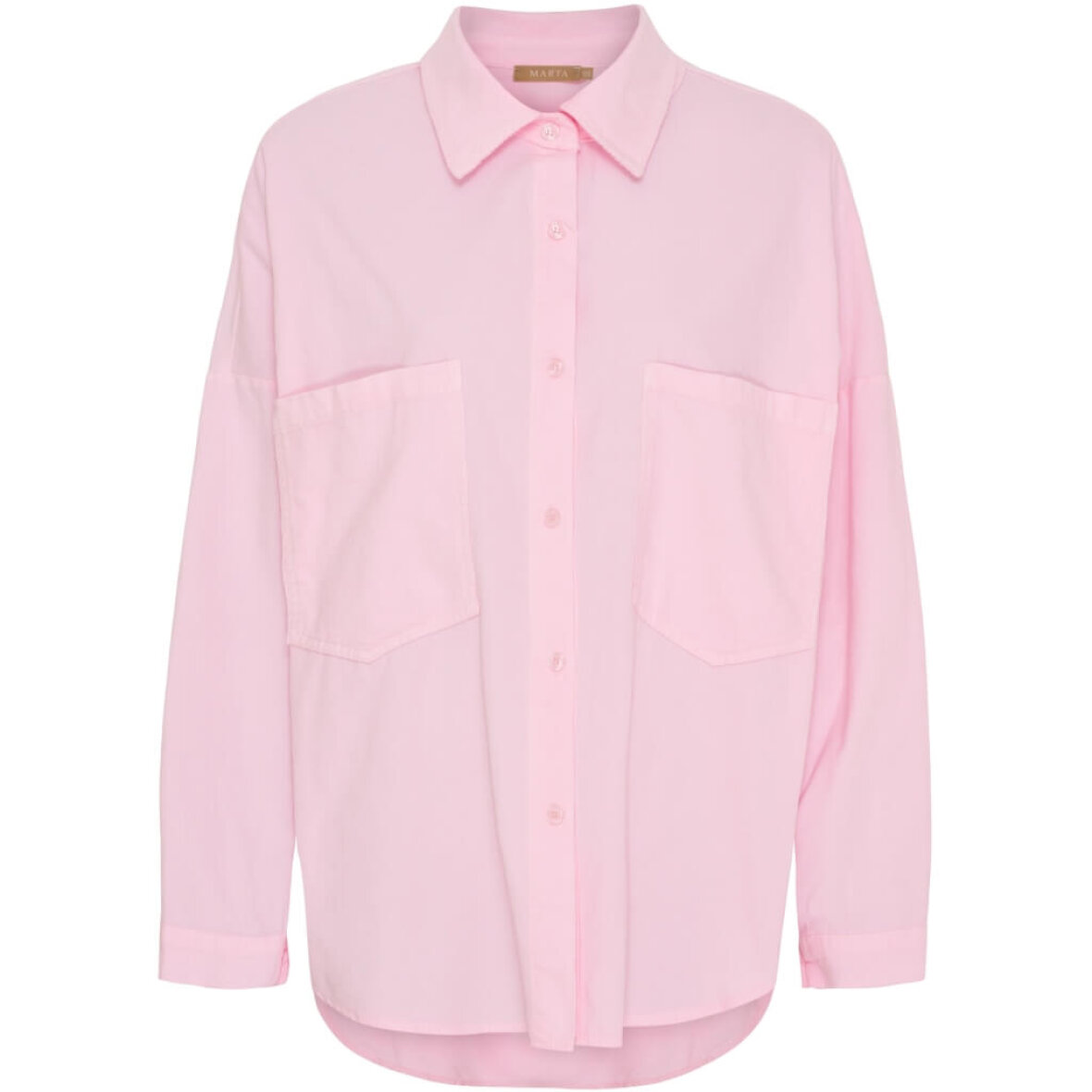 Marta Du Chateau skjorte i en pink fløjlskvalitet, som emmer af forår og sommer. Fløjl er en tidløs klassiker, der kombinerer luksuriøs blødhed med et elegant udtryk. Det karakteristiske stof giver skjorten en let struktur og dybde, samtidig med at den er behagelig at have på.