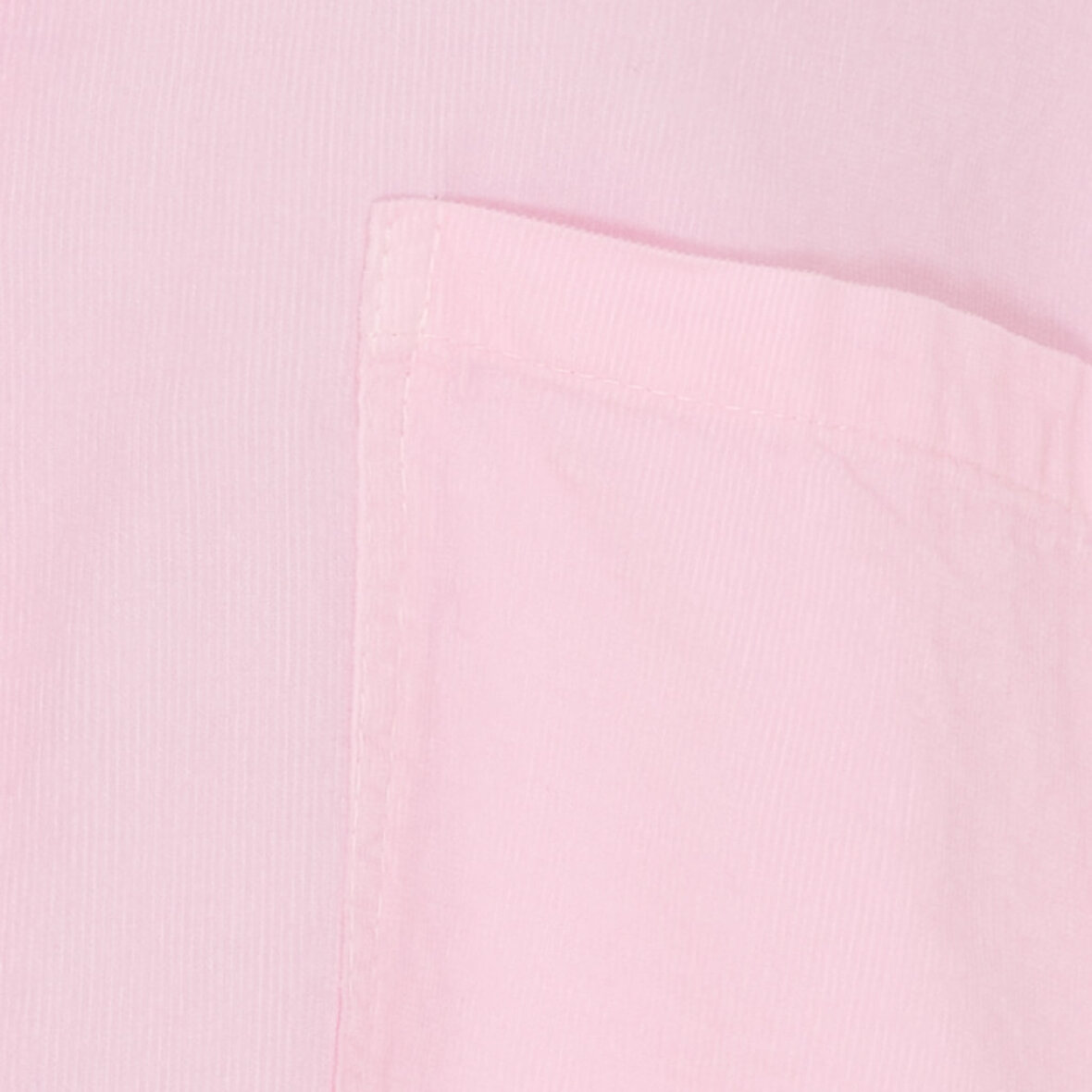 Skjorten er med krave og gennemgående knapper foran. De lange ærmer lukkes med knapluk. Den pink fløjls skjorte er med to store brystlommer og er en anelse længere bagtil.