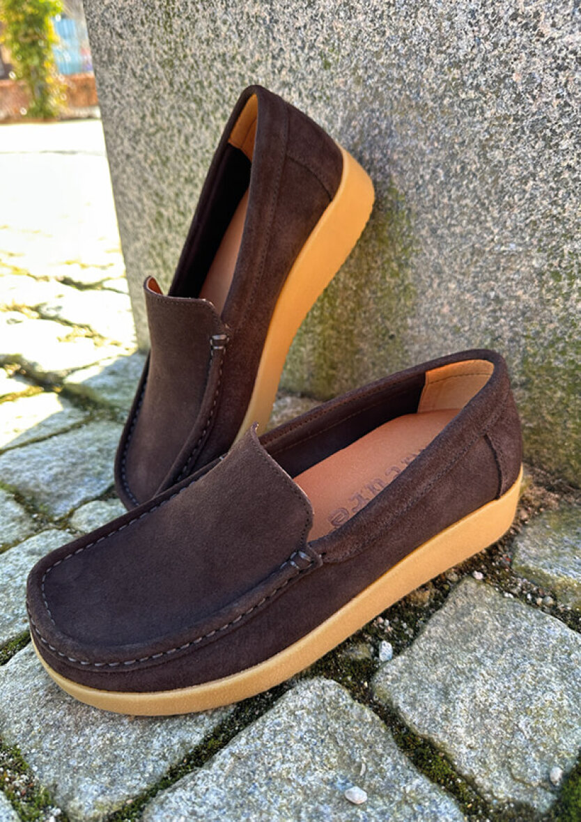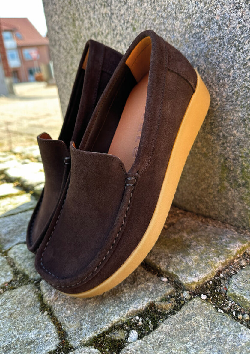 De skønneste ruskindsko fra Nature Footwear i den velkendte Elin model. En behagelig fodformet loafer med et minimalistisk og klassisk udtryk, der gør den til et alsidigt valg i hverdagen.