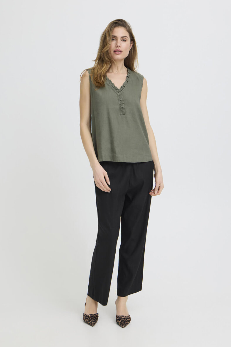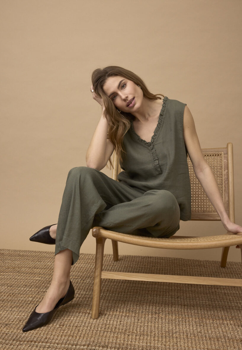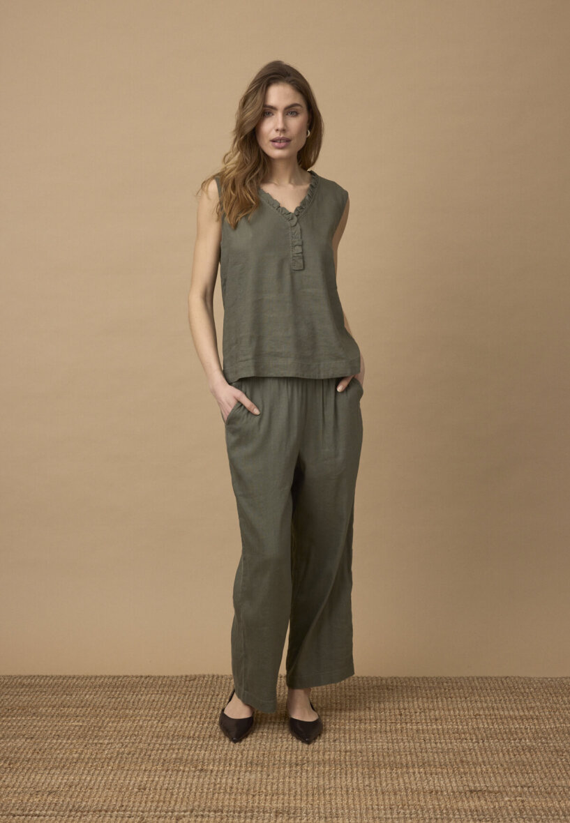 Toppen er lavet i en let og luftig blanding af hør og viskose som passer perfekt til de varme måneder.
