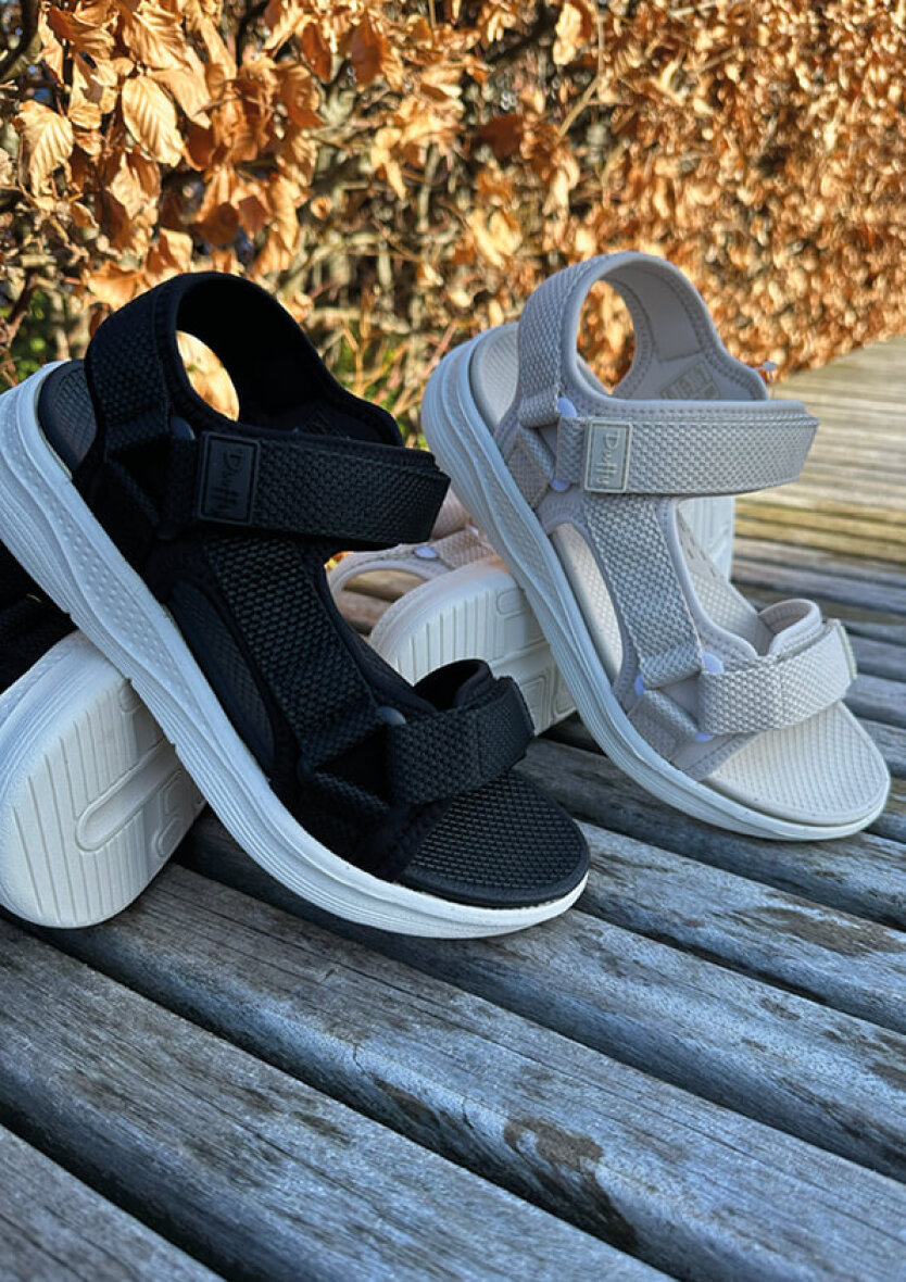 Sandalen er lavet i et sporty udtryk med strukturerede tekstil detaljer på remmene. Perfekte til både hverdagsbrug, ferier og lange sommerdage på farten.