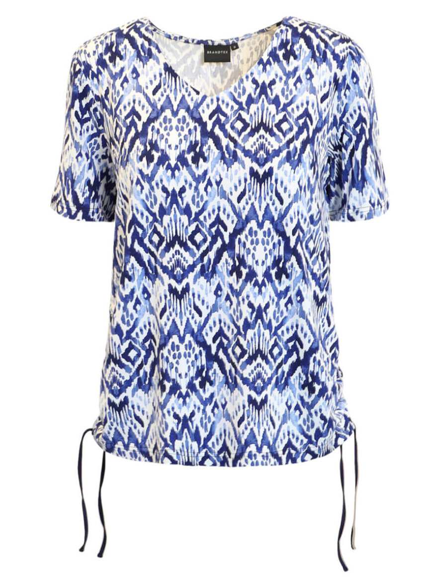 Brandtex t-shirt i et grafisk blå/hvid mønster i en behagelig viskose kvalitet med stræk.