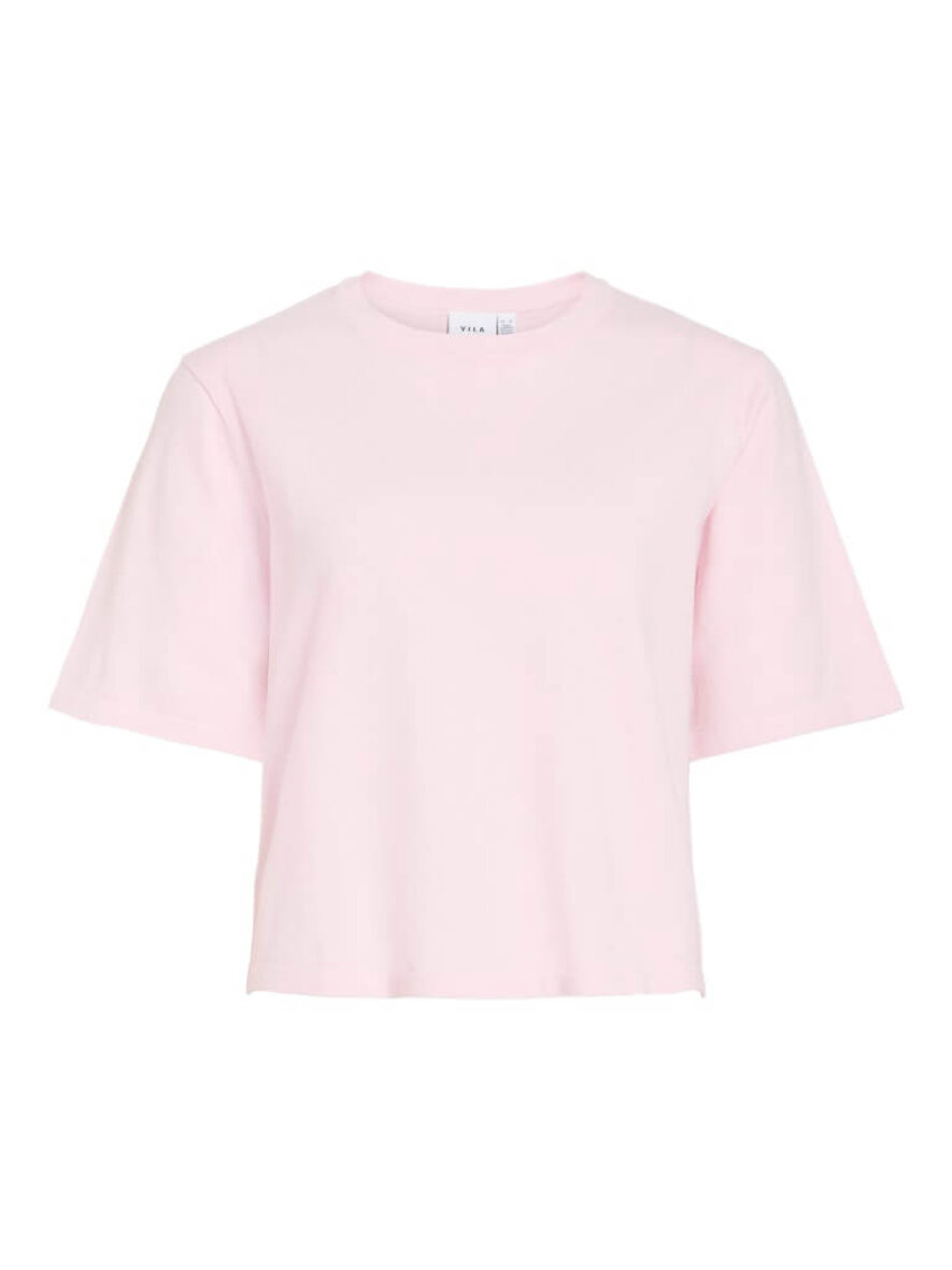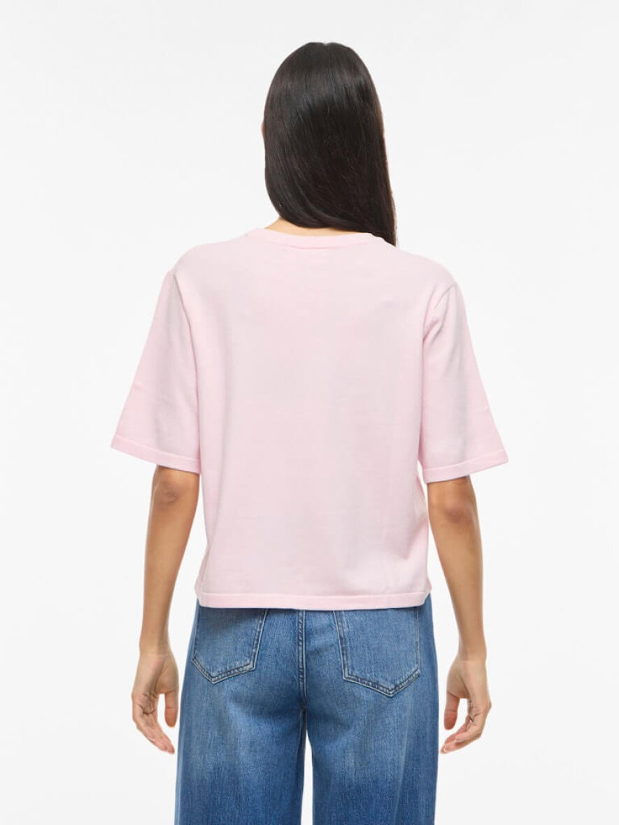 VILA strik i en flot rosa meleret farve. Den kortærmet strik er lavet i et enkelt design med rund hals og ribkant ved alle åbninger. Vimalu strikken er lavet i en cropped pasform med god rummelighed.