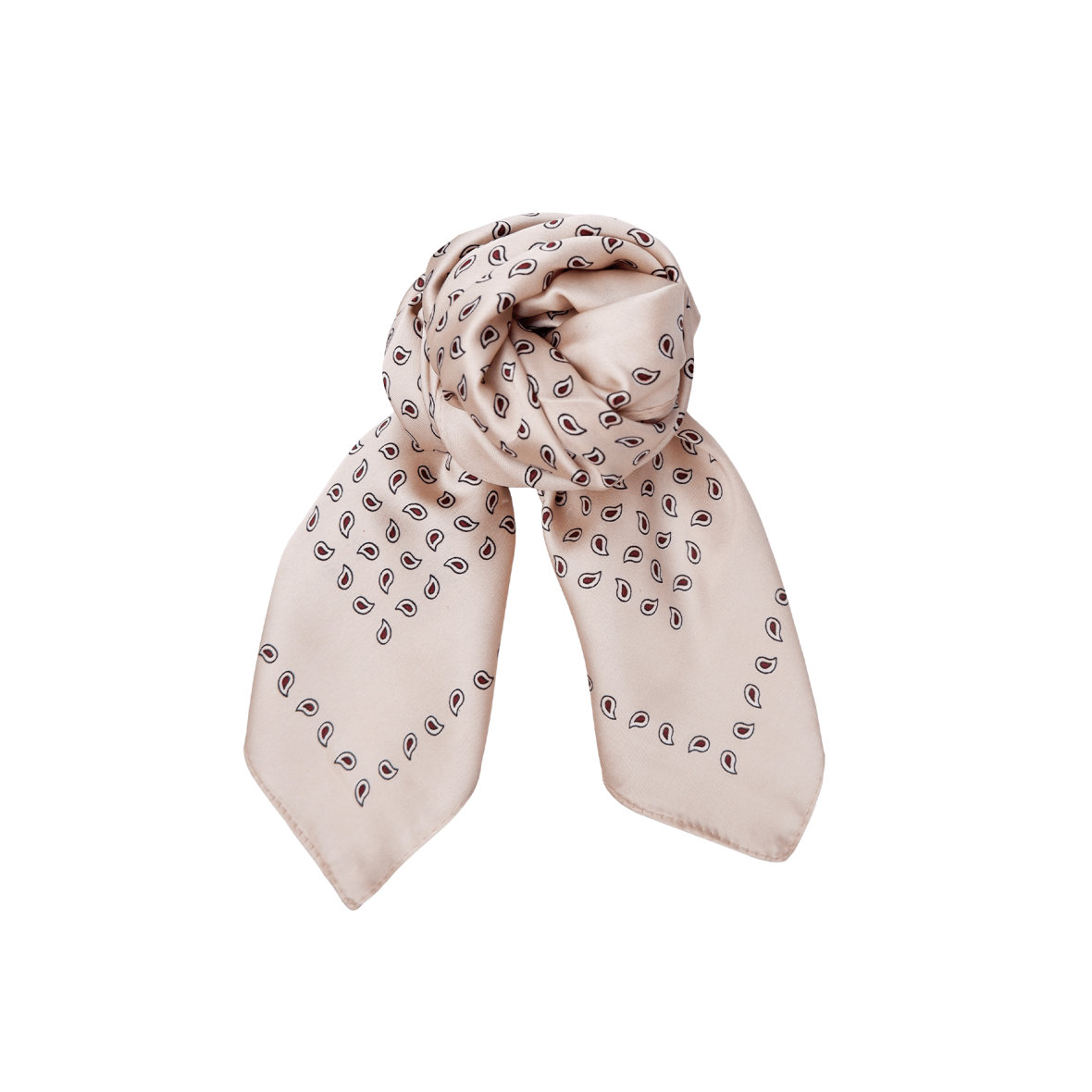 Fuldend outfittet med et silkeblødt mini tørklæde fra Black Colour. Tørklædet er lavet i en cremefarve med et fint og enkelt print.