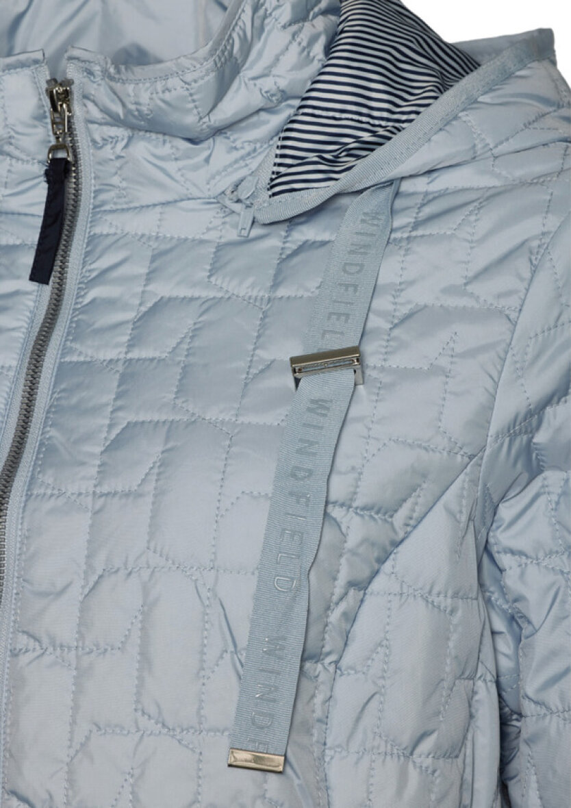 Windfield damejakke i en lyseblå farve og let figursyet pasform. Perfekt til forårs- og sommerbrug, som kombinerer moderne design med praktisk funktionalitet.