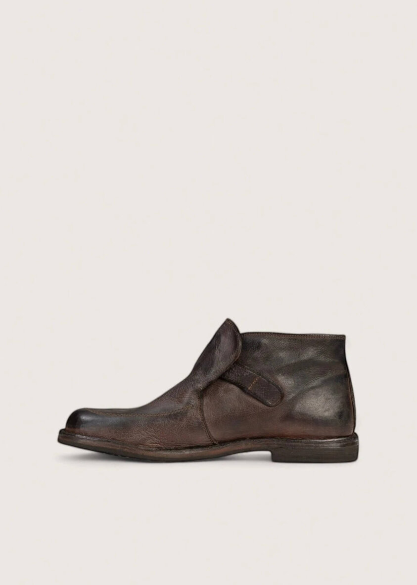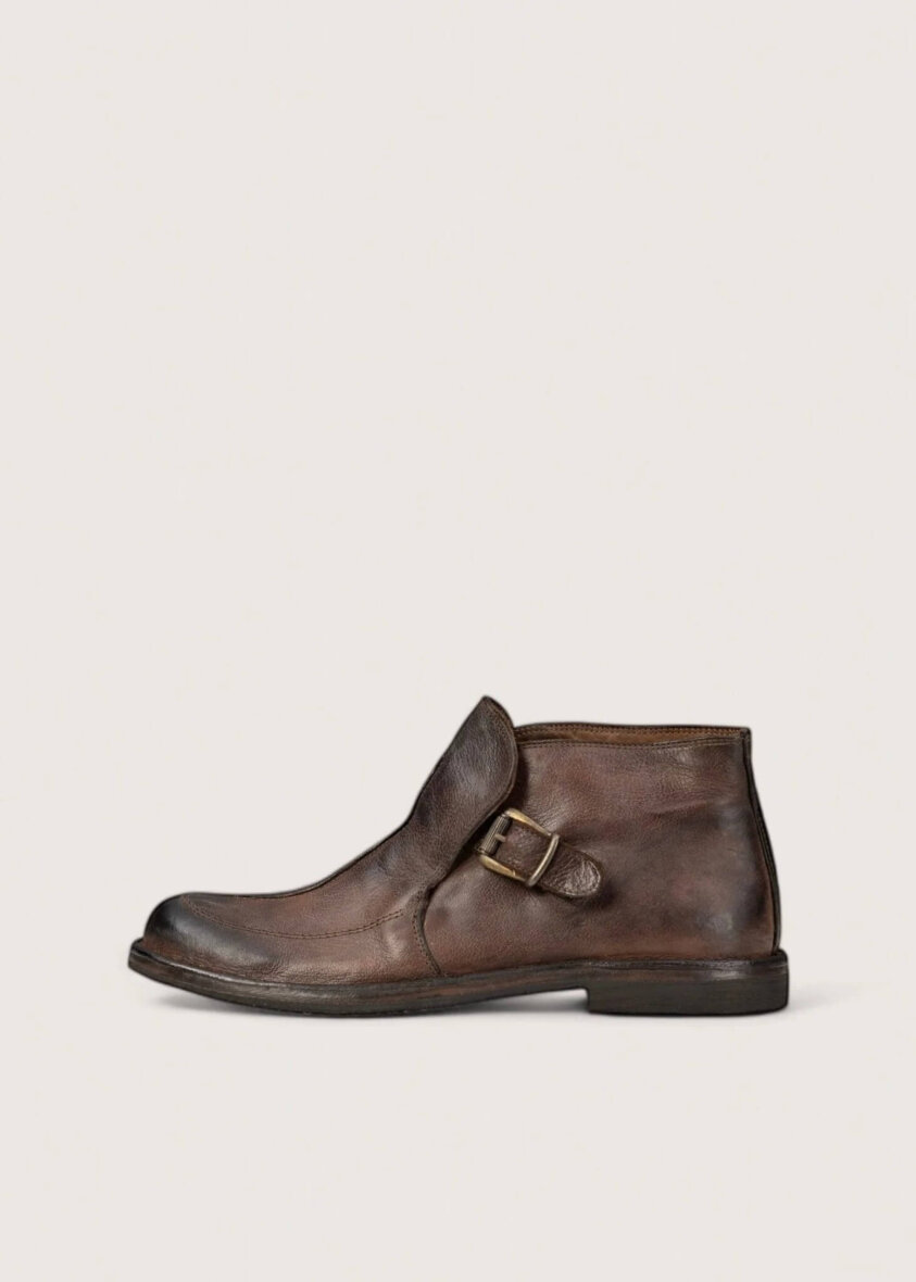 Elegante brun ankelstøvle fra Bubetti i en flot brun farve. Støvlen er lavet i vegetabilsk garvet kalveskind, hvilket giver den et unikt og råt udtryk samt en smuk patina allerede fra første brug.