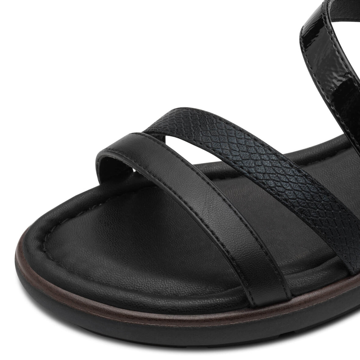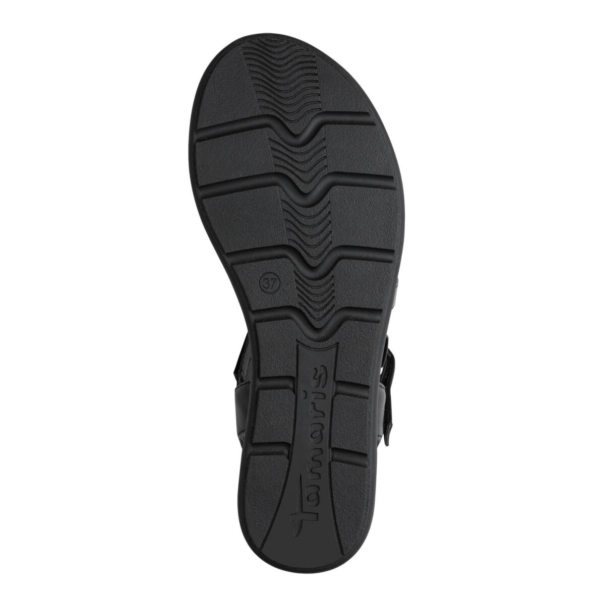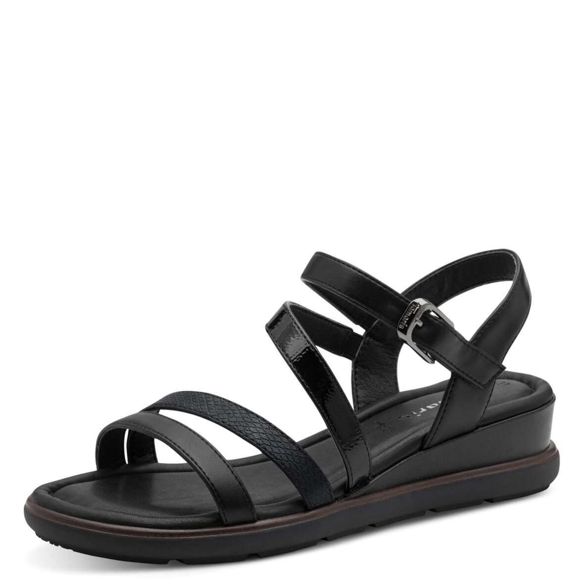 Tamaris sandaler i et elegant design. Wedgesandalen er udført i sort imiteret skind med med smalle remme over forfoden og en justerbare spænderem. Indeni er Tamaris' bløde touch-it indersål, som sikrer en god komfort hele dagen lang.