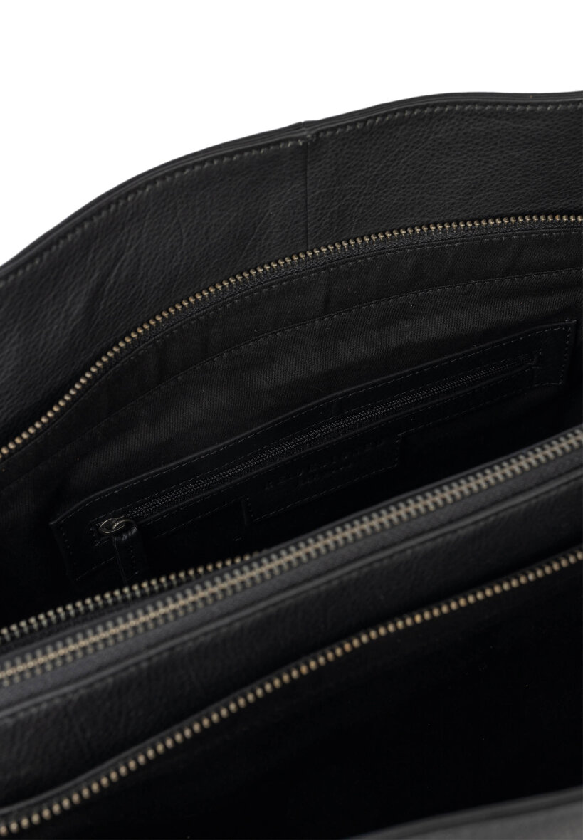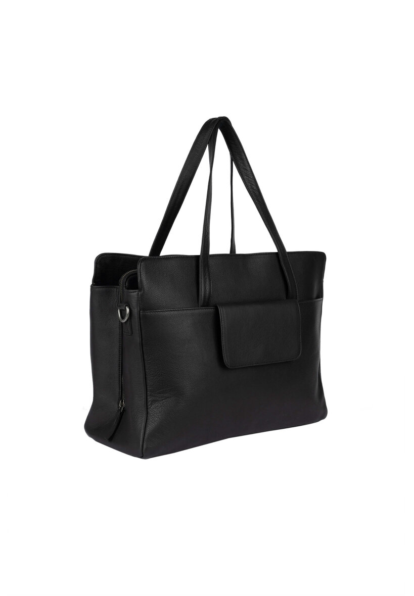 Tasken er lavet i Urban læder, som er en blød og valset koskindskvalitet, der indfarves før overfladen færdiggøres. Det fremhæver læderets naturlige struktur og gør hver taske unik. Afslutningsvis behandles læderet med en let voks, som giver en glat og blød finish.