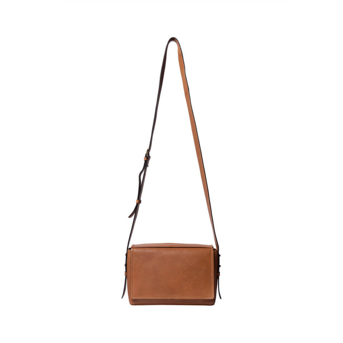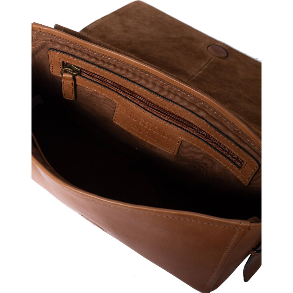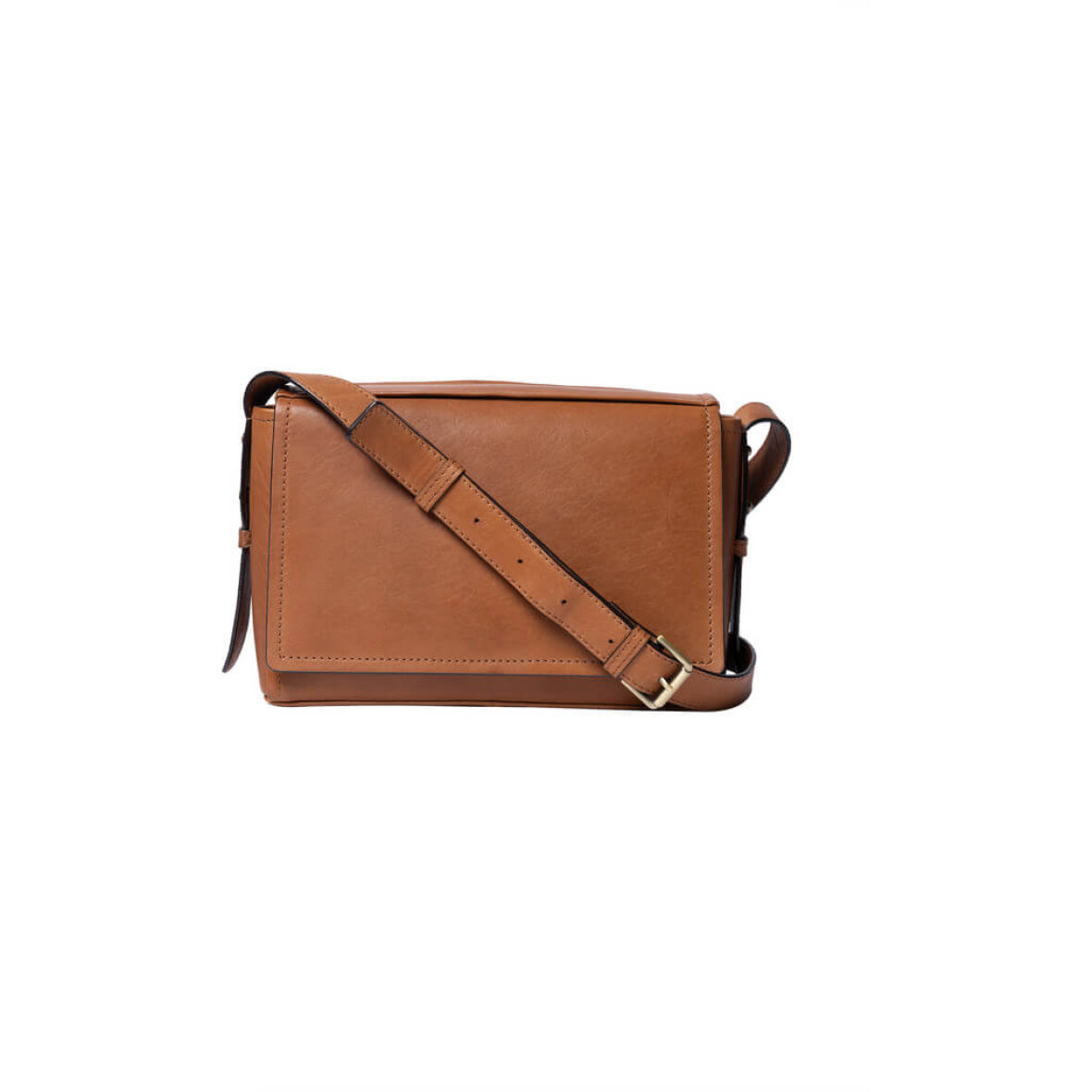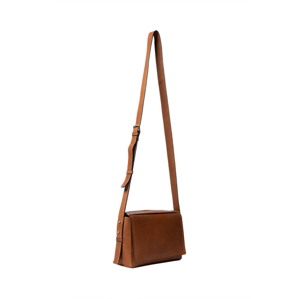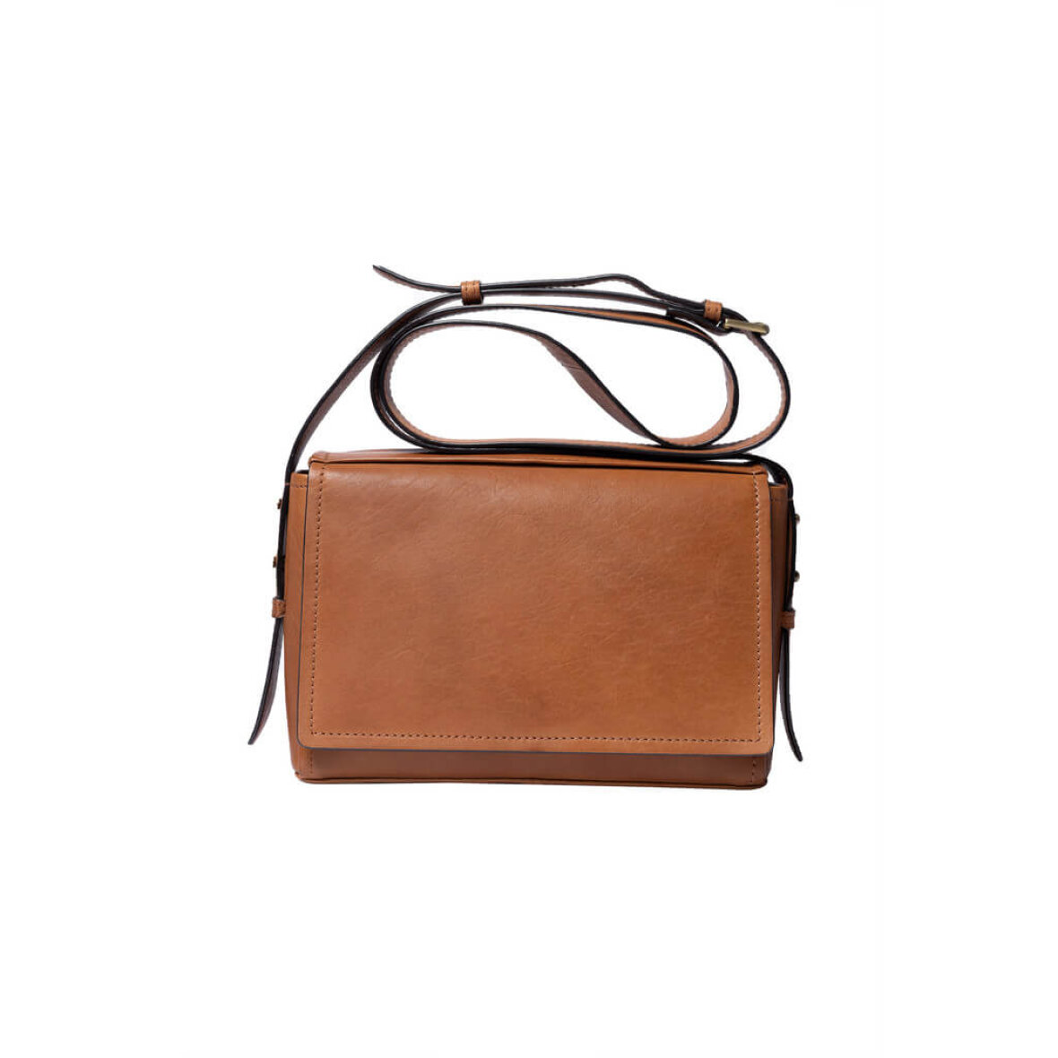 Tasken er håndlavet i en skøn brun tan farve, som er nem at style med diverse outfits. Tasken er med flapluk med trykknap, som giver nem og sikker lukning.