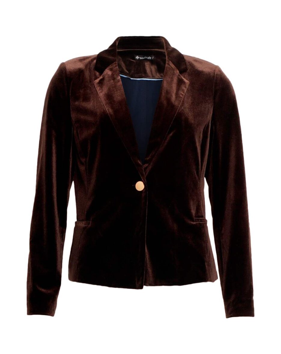 Skøn kort velour blazer med en enkelt flot guldknap til lukning. Flot revers.