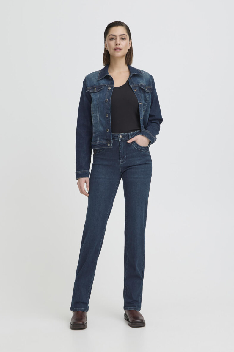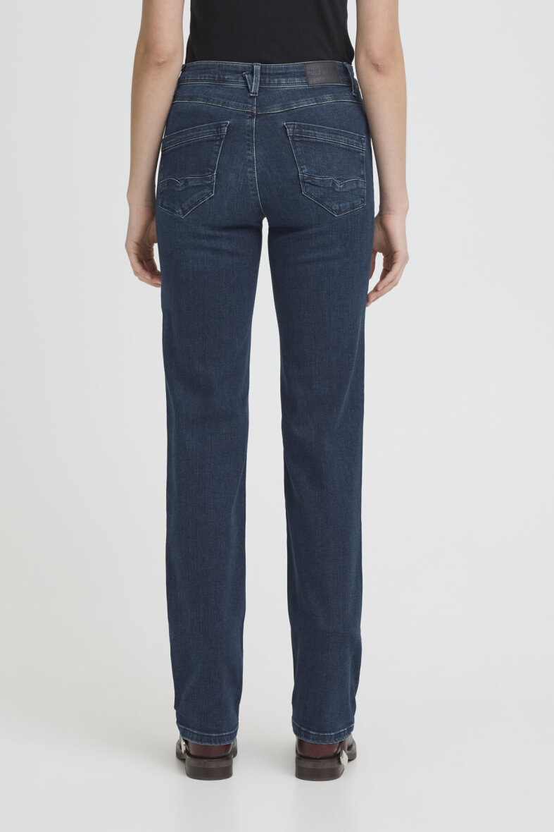 Pulz Jeans i modellen Karolina i en alsidig mørkeblå farve med fine detaljer. Buksen er i en high waist model med lige bukseben.