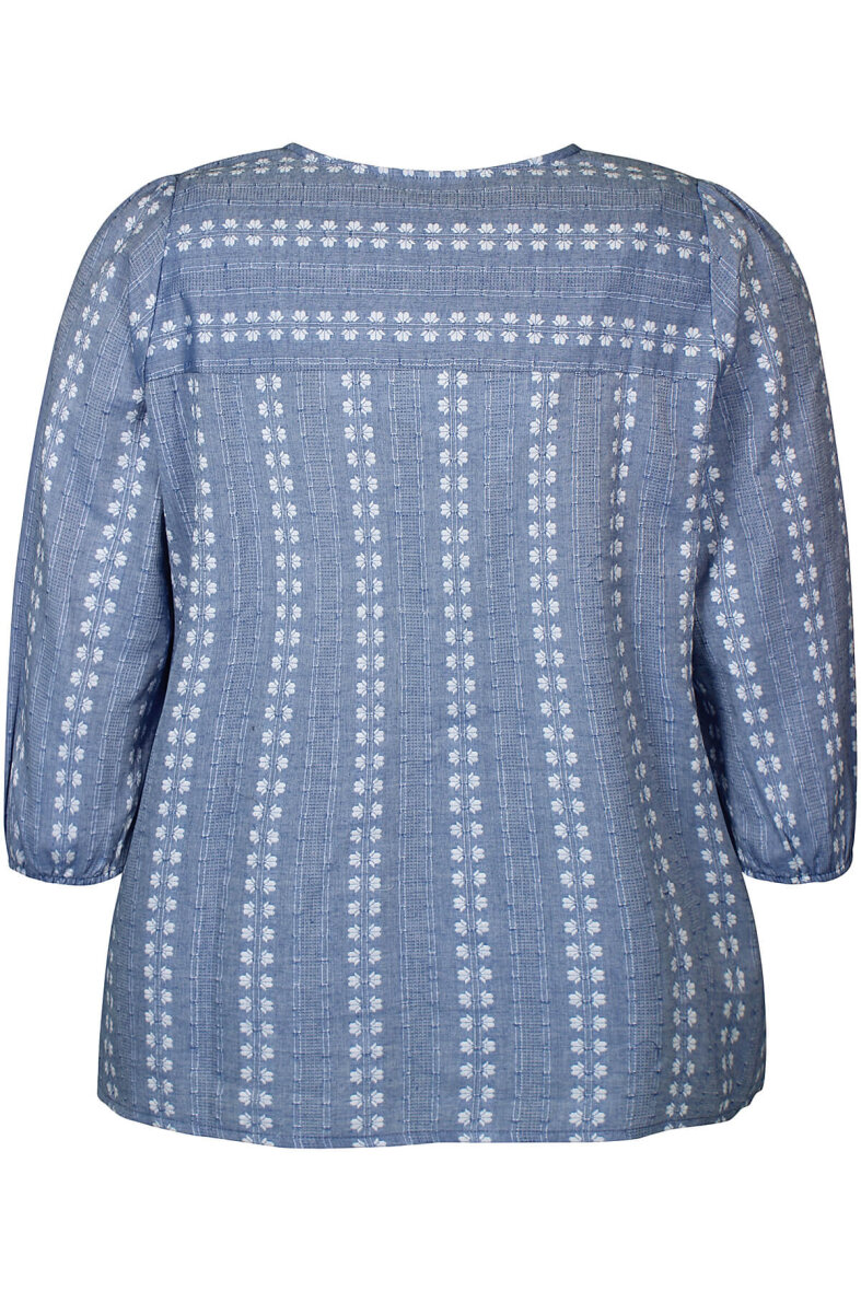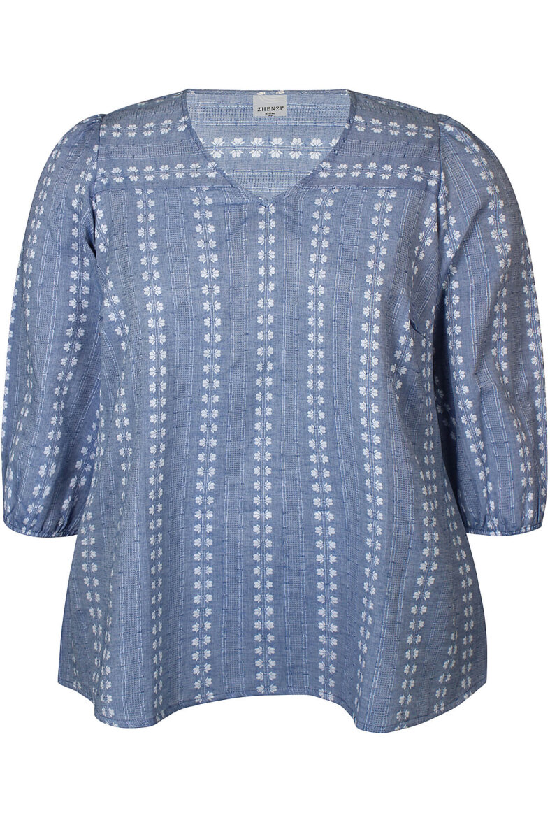 Zhenzi bluse i flot lyseblå farve med det fineste mønster. Det striblet mønster giver en flot struktur i stoffet.