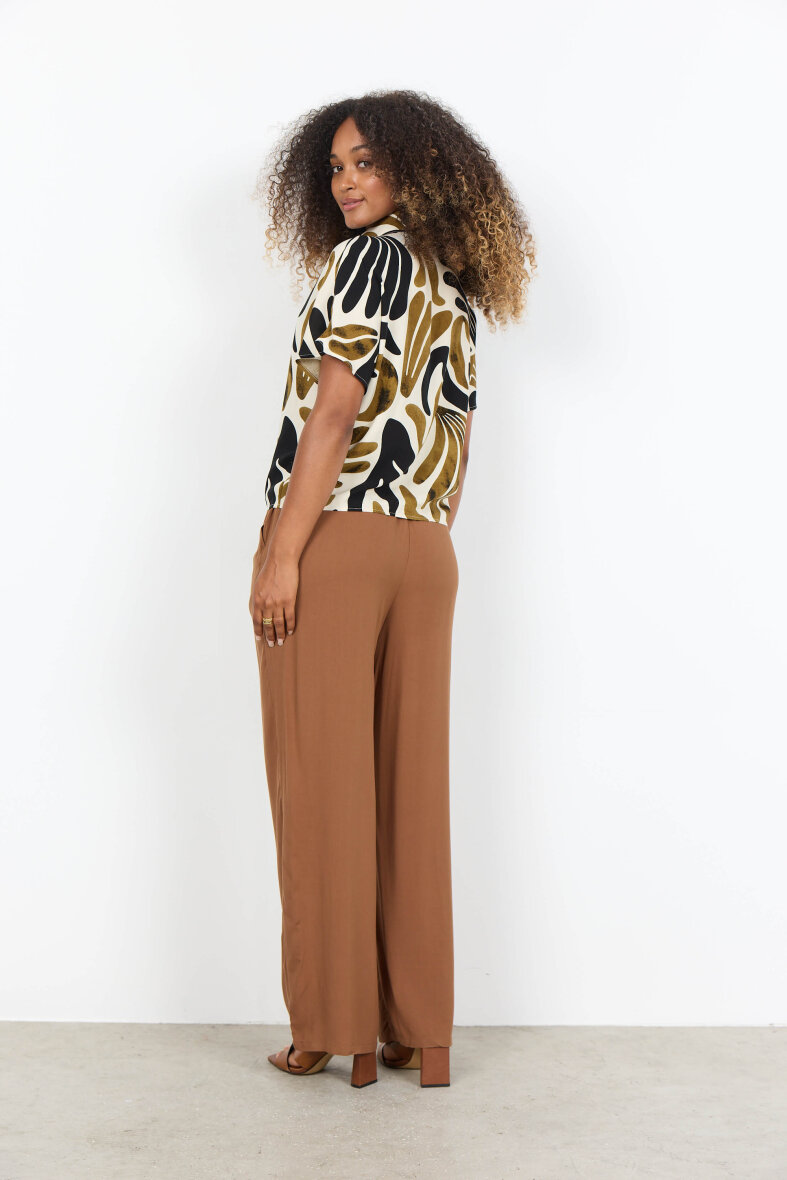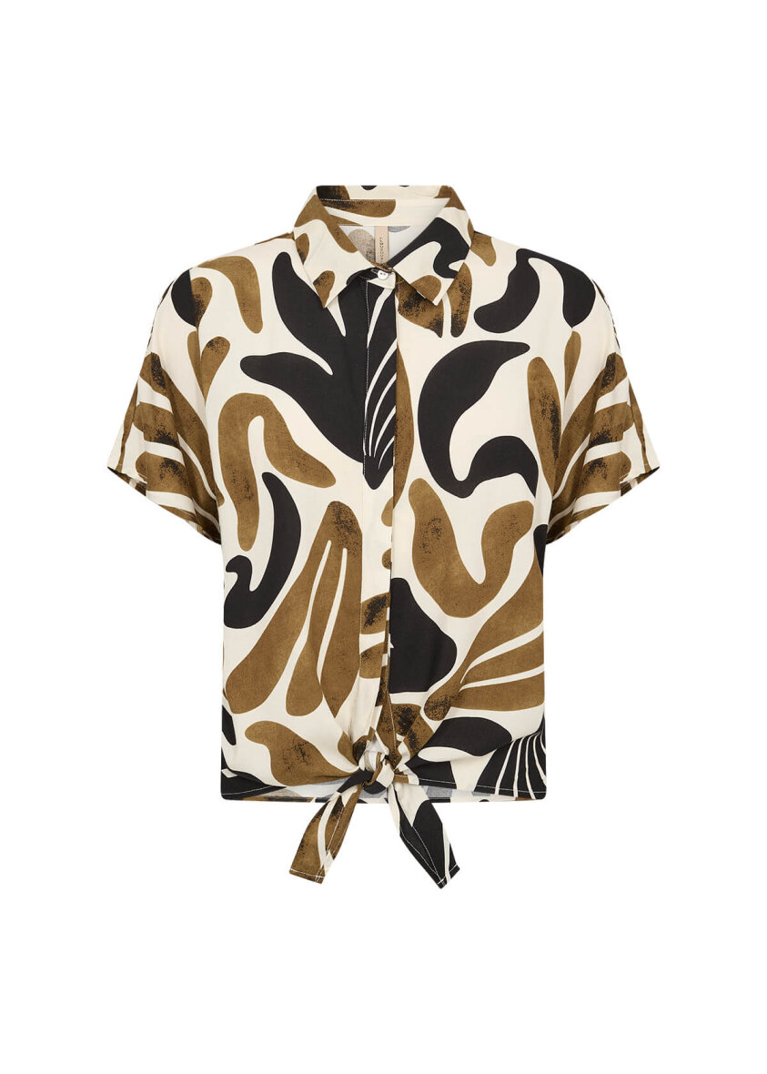 Soyaconcept skjorte i et flot abstrakt print i beige, brune og sorte farver som skaber en rolig farvekombination, som er nem at style med både nederdele, bukser og jeans.
