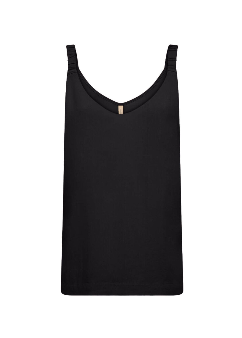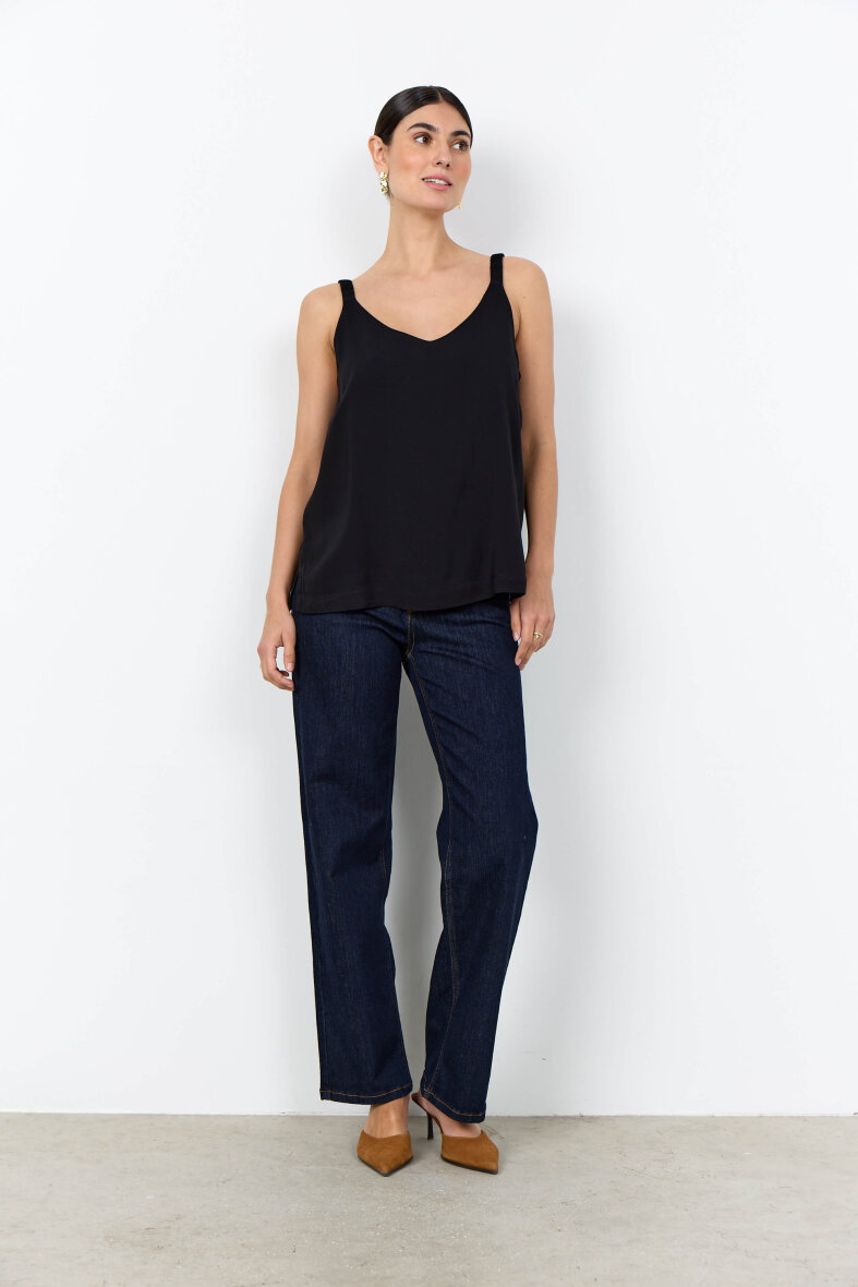Soyaconcept top i modellen Radia. Toppen er sort, hvilket gør den nem at style til forskellige anledninger og outfits. En skøn sort top til basisgarderoben.