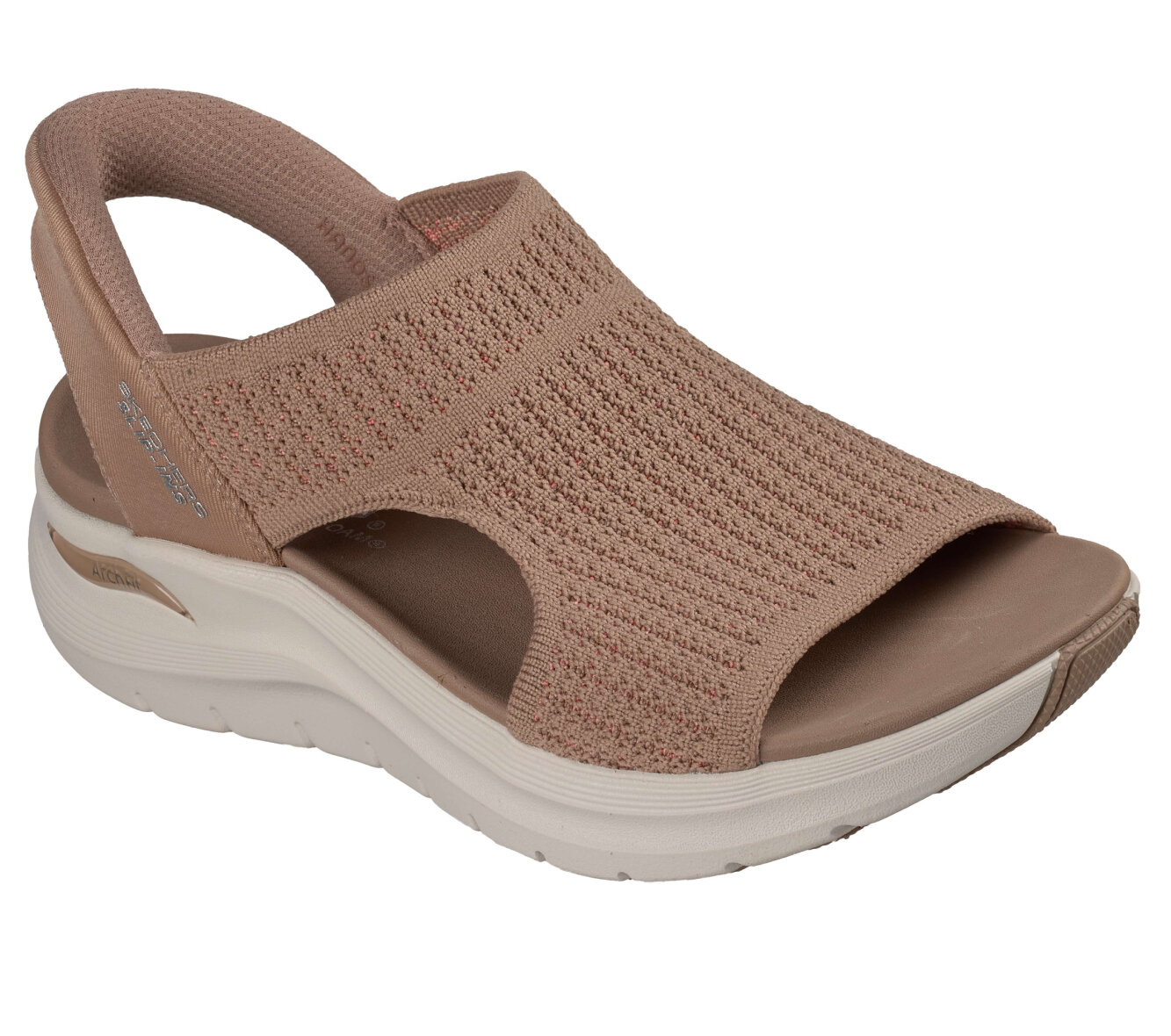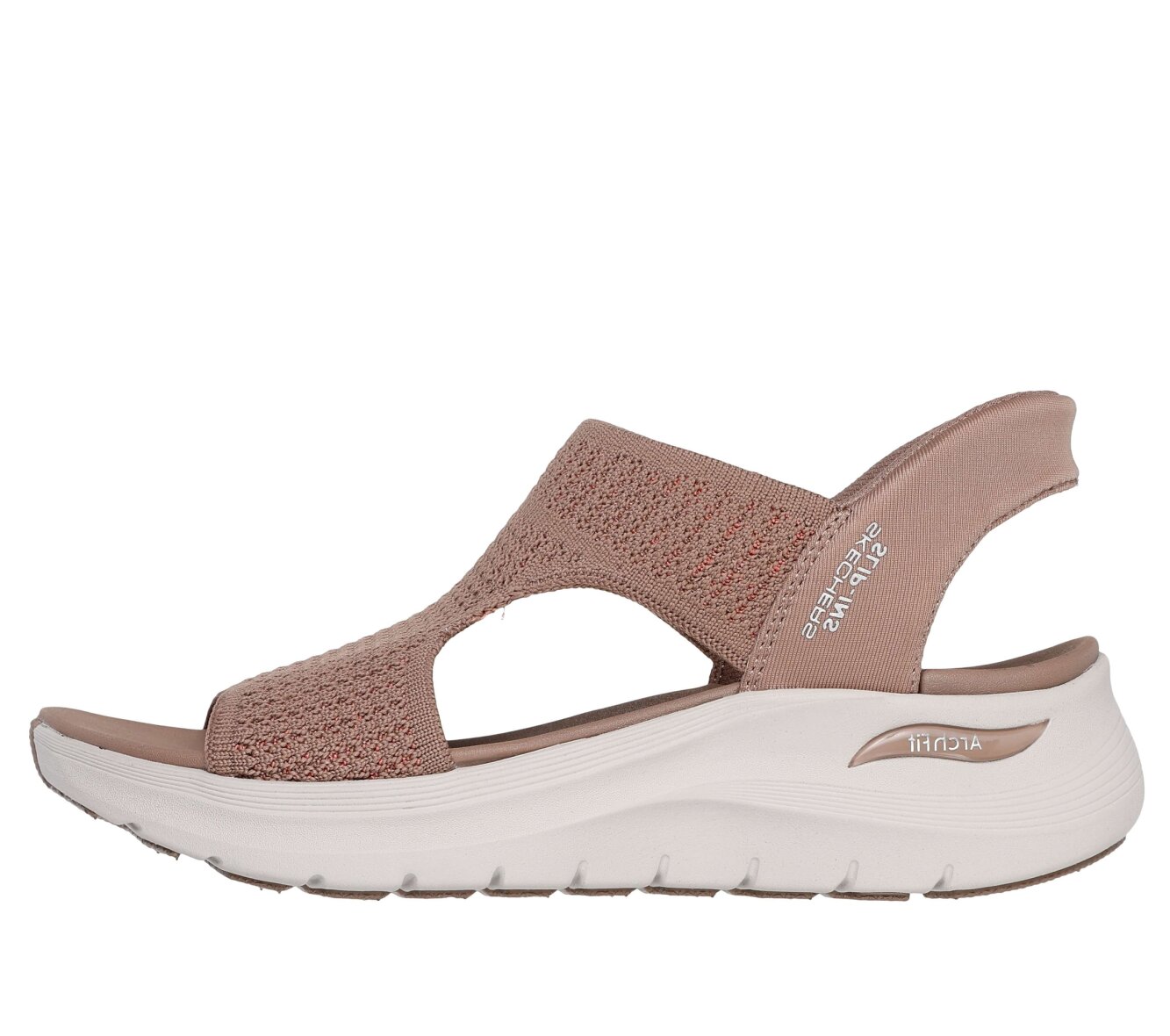 Skechers sandaler til kvinder i modellen Slip-ins: Arch Fit 2.0 - My Everyday. Sandalen er lavet i et enkelt lysebrunt design med en sporty lys sål.