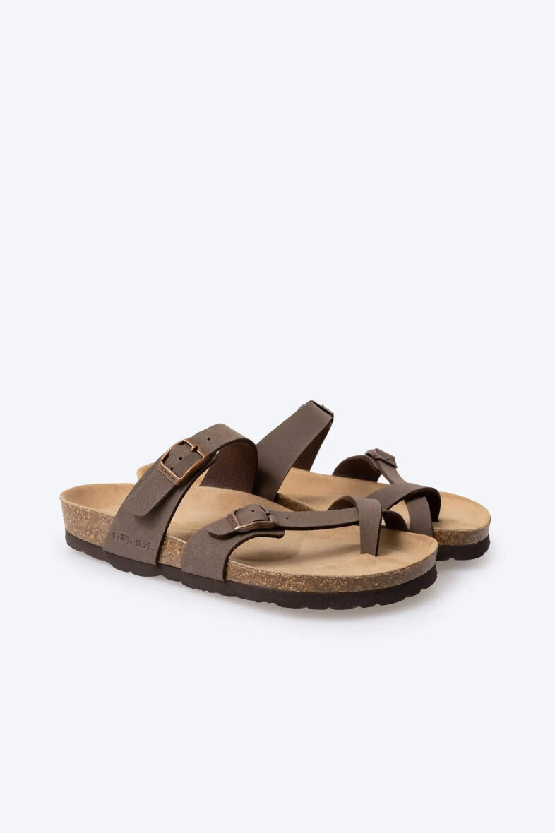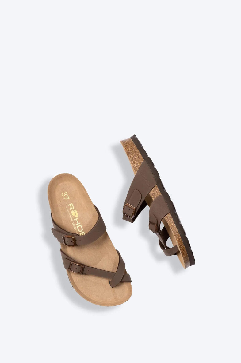 Skøn tå-rem sandal fra Rohde, som er en perfekt til de varme sommerdage, hvor fødderne skal luftes. Sandalens overdel er lavet i imiteret brun skind med åndbar runskindssål.