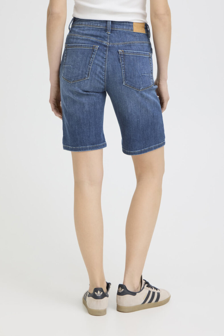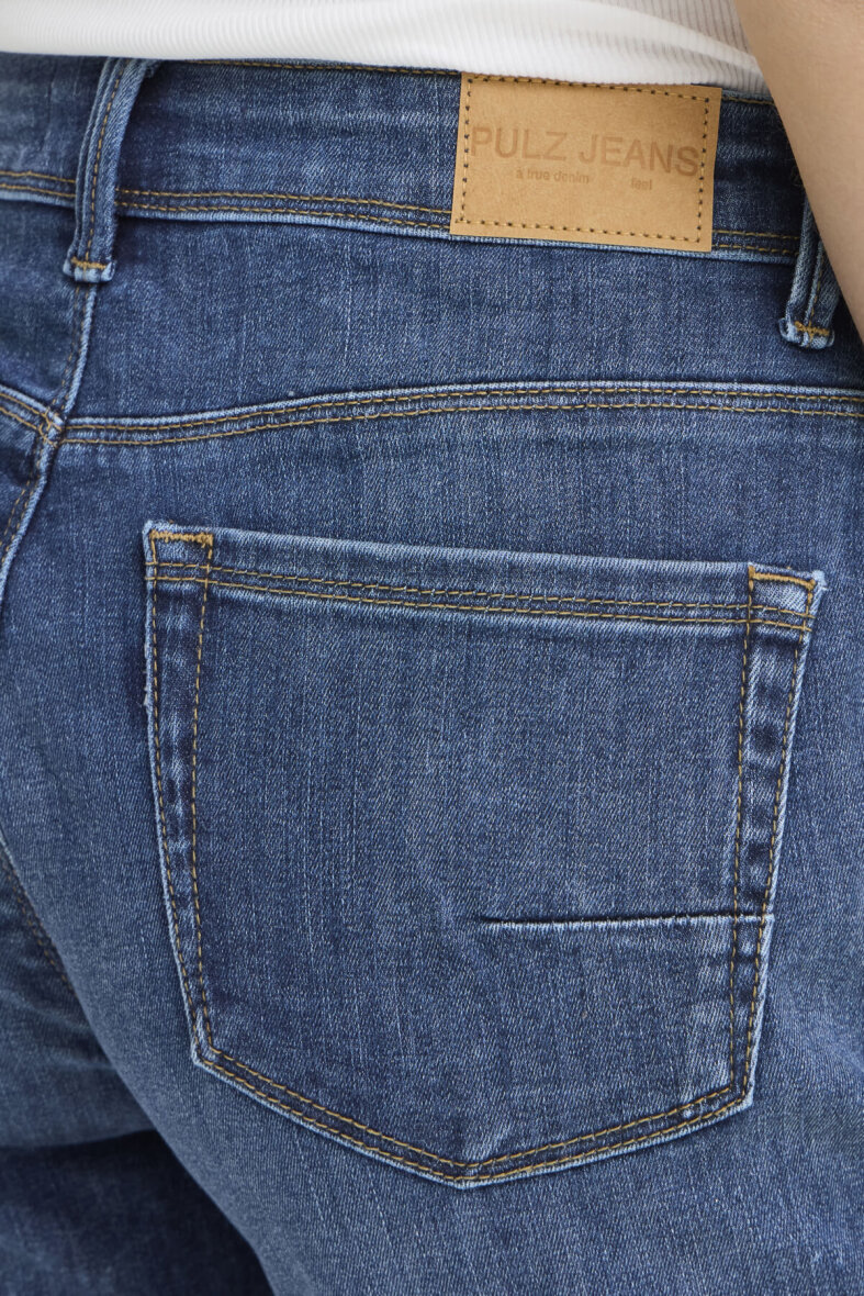 Pulz Jeans shorts i modellen KAYLA. Shortsene i medium blå er et casual og stilfuldt valg til de varme måneder, som er nem at style med diverse overdele og sandaler eller sneakers for et stilfuldt sommerlook.