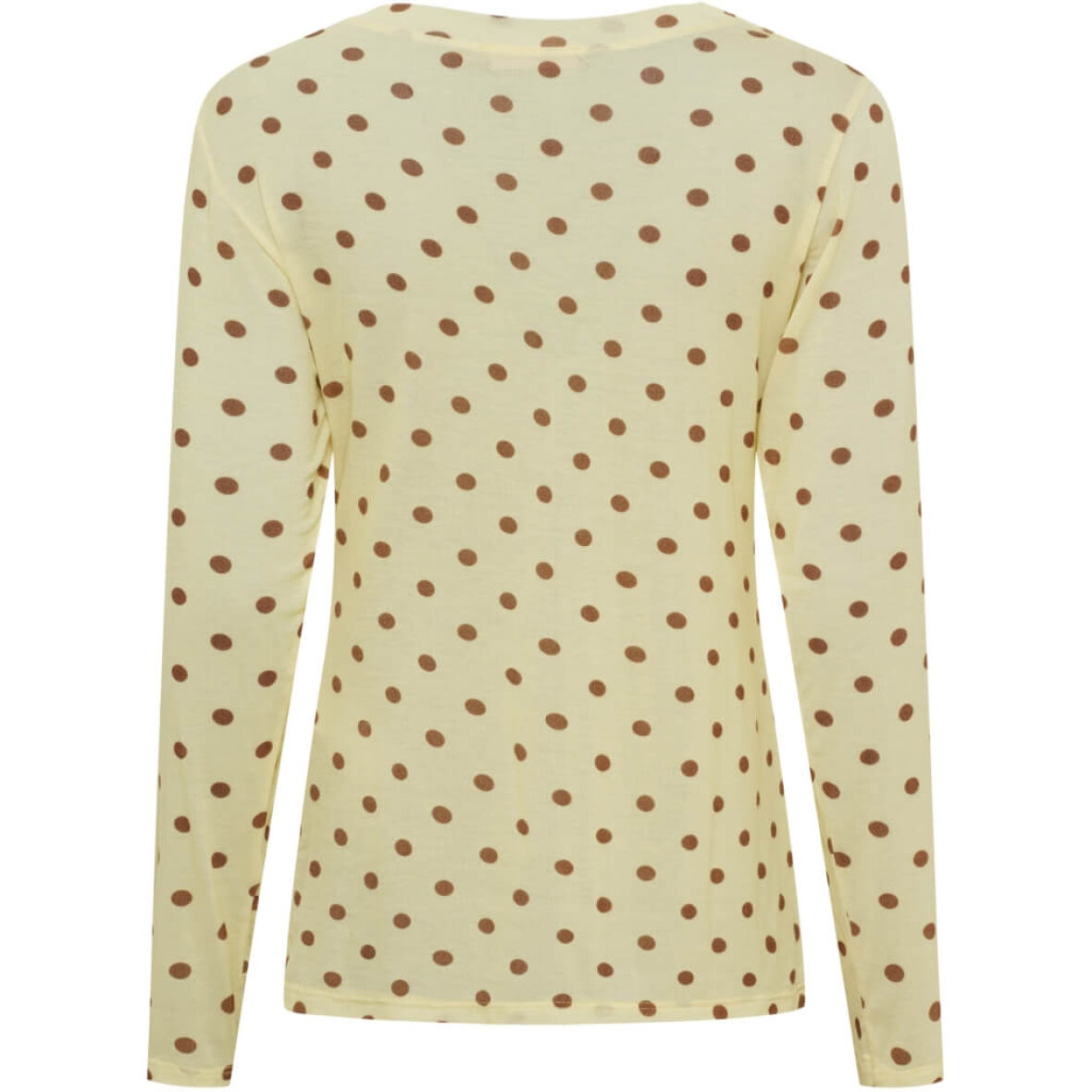 Marta Du Chateau bluse i en pastel gul farve med et moderne prikket mønster i brune prikker.