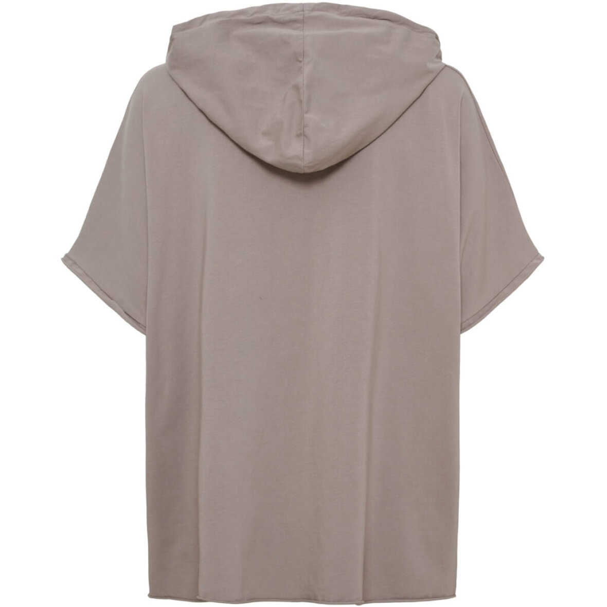 Blusen er med v-hals med knapper og stolpeluk samt hætte med snører. Blusen er med korte ærmer med rå kanter, hvor blusen er længere bagtil. Med flap brystlommer.