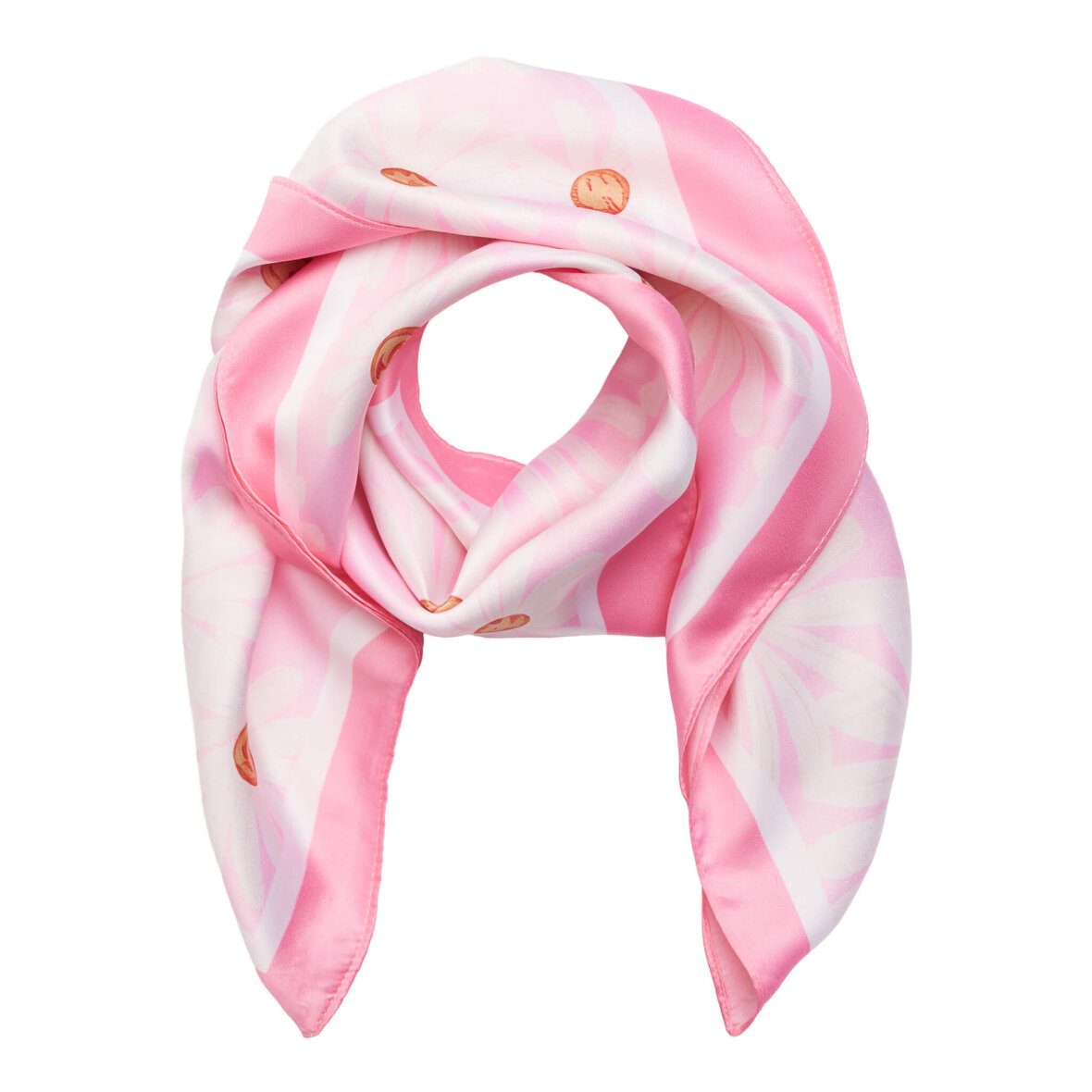 Marta Du Chateau tørklæde i modellen Finja. Tørklædet er lavet i en silkeblød polyester kvalitet i et enkelt og elegant design i lyserød med hvide margueritter.