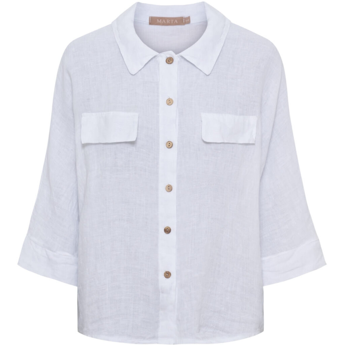 Marta Du Chateau skjorte i en klassisk hvid farve. Skjorten er lavet i 100% hør kvalitet som gør den perfekt til de varme dage, da hør giver en let og luftig fornemmelse.