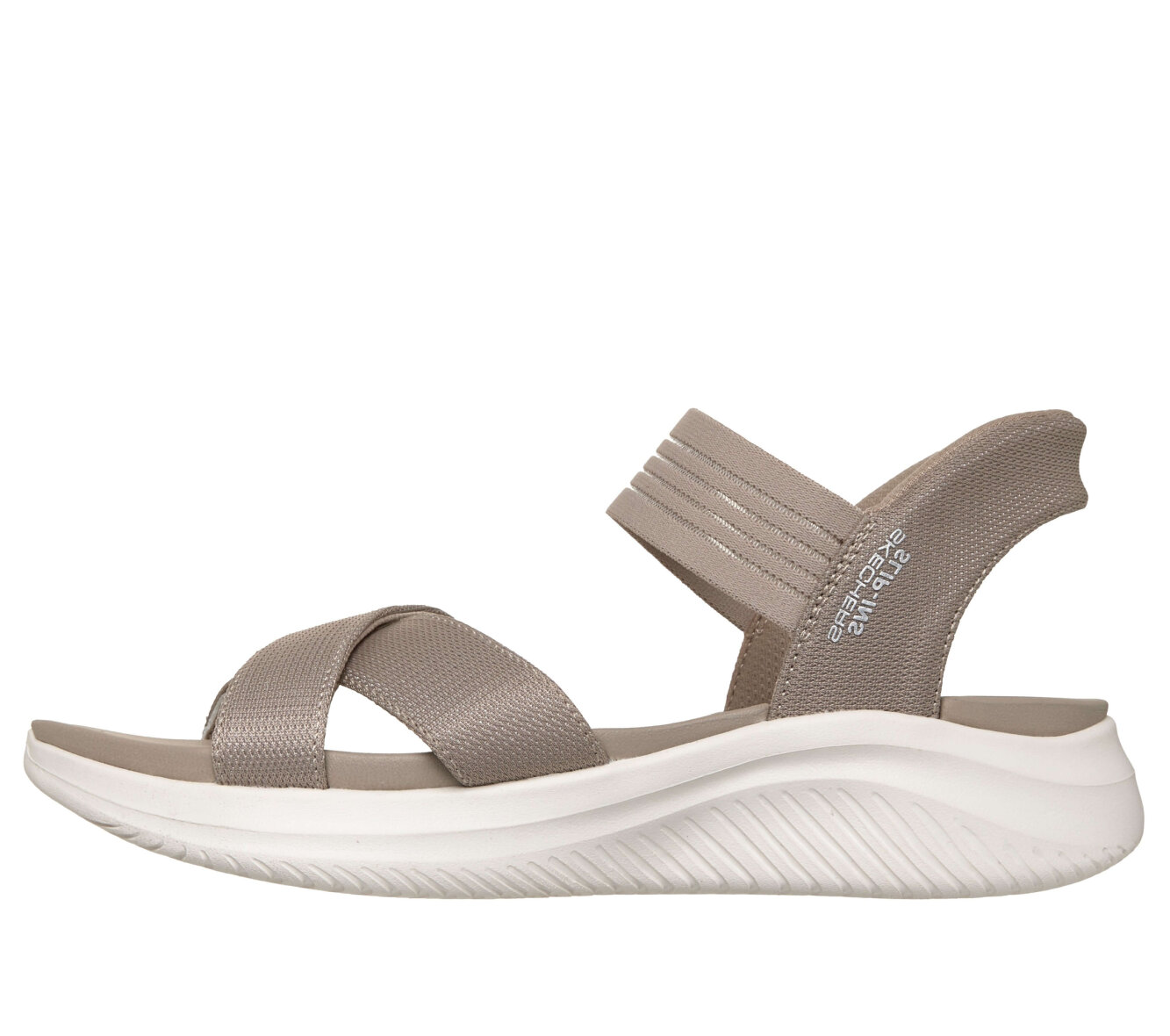 Skechers sandal til kvinder i modellen Slip-ins: Ultra Flex 3.0 – Never Better i en flot lysebrun (taupe) farve, som er nem at style til diverse outfits. En skøn sling back sandal som er perfekt til de varme sommerdage.