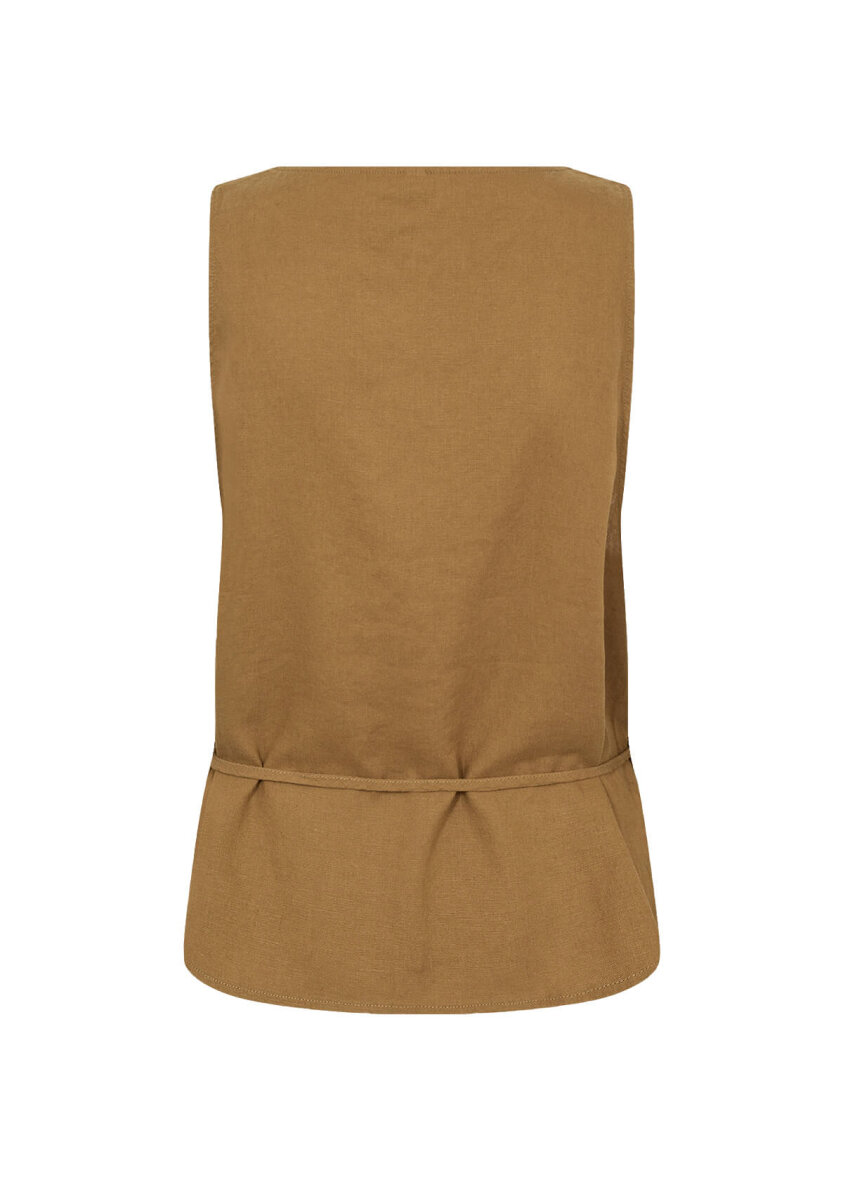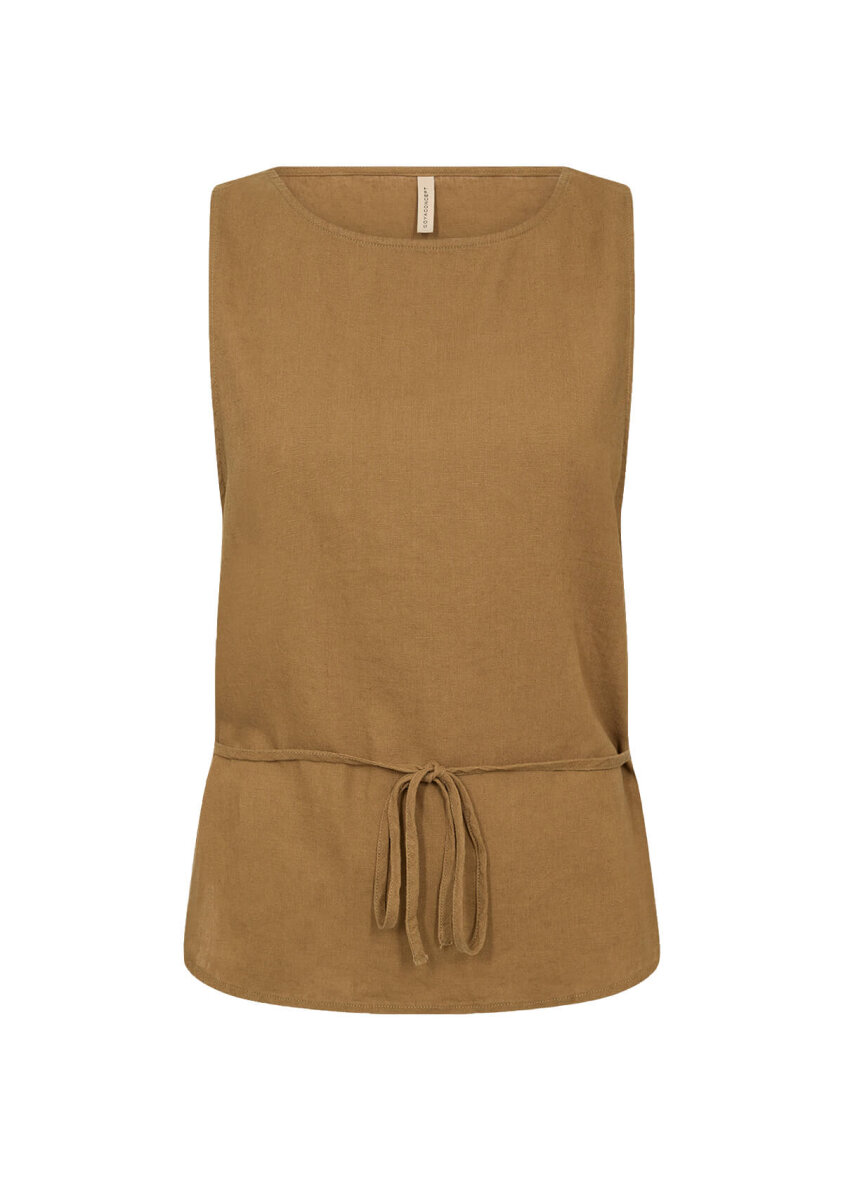 Toppen er udført i en blanding af hør og viskose, som giver en let for luftig fornemmelse - perfekt til de varme dage.