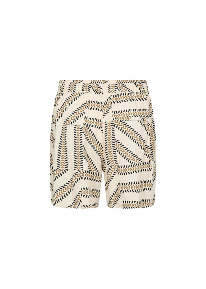 Soyaconcept shorts i en lys creme farve med et unikt stribet mønster i brune og sorte toner. Shortsene er med elastik i taljen samt bindebånd,så man nemt kan spænde shortsene ind efter behov.