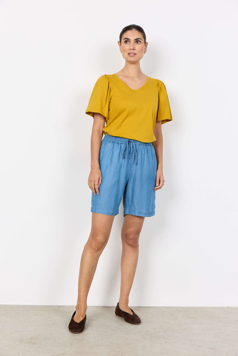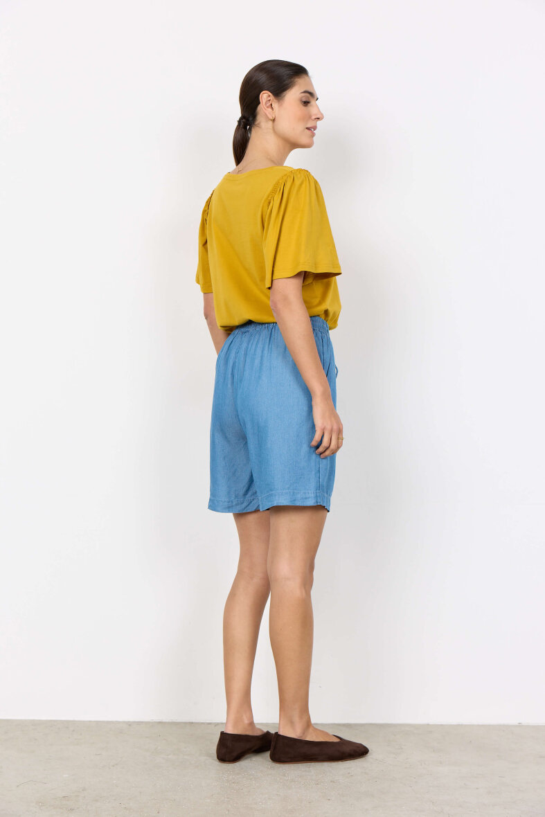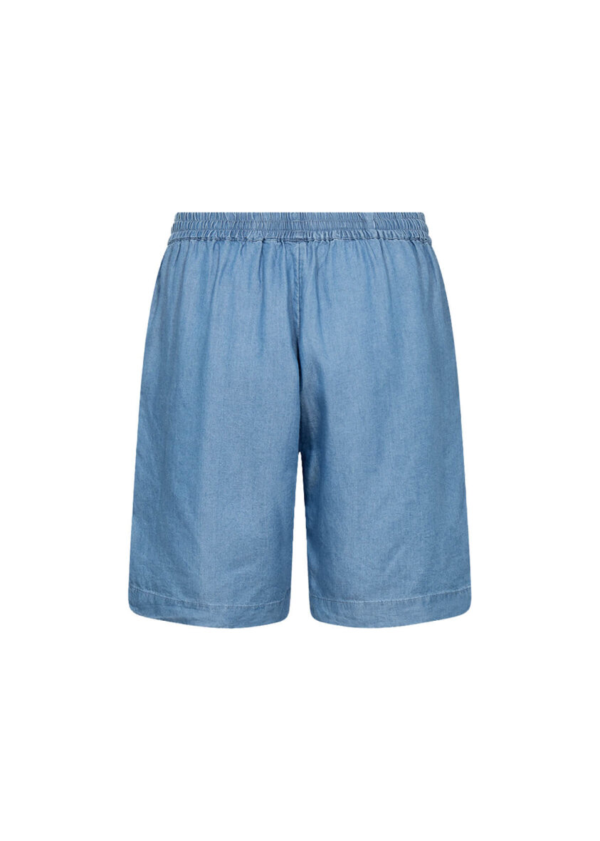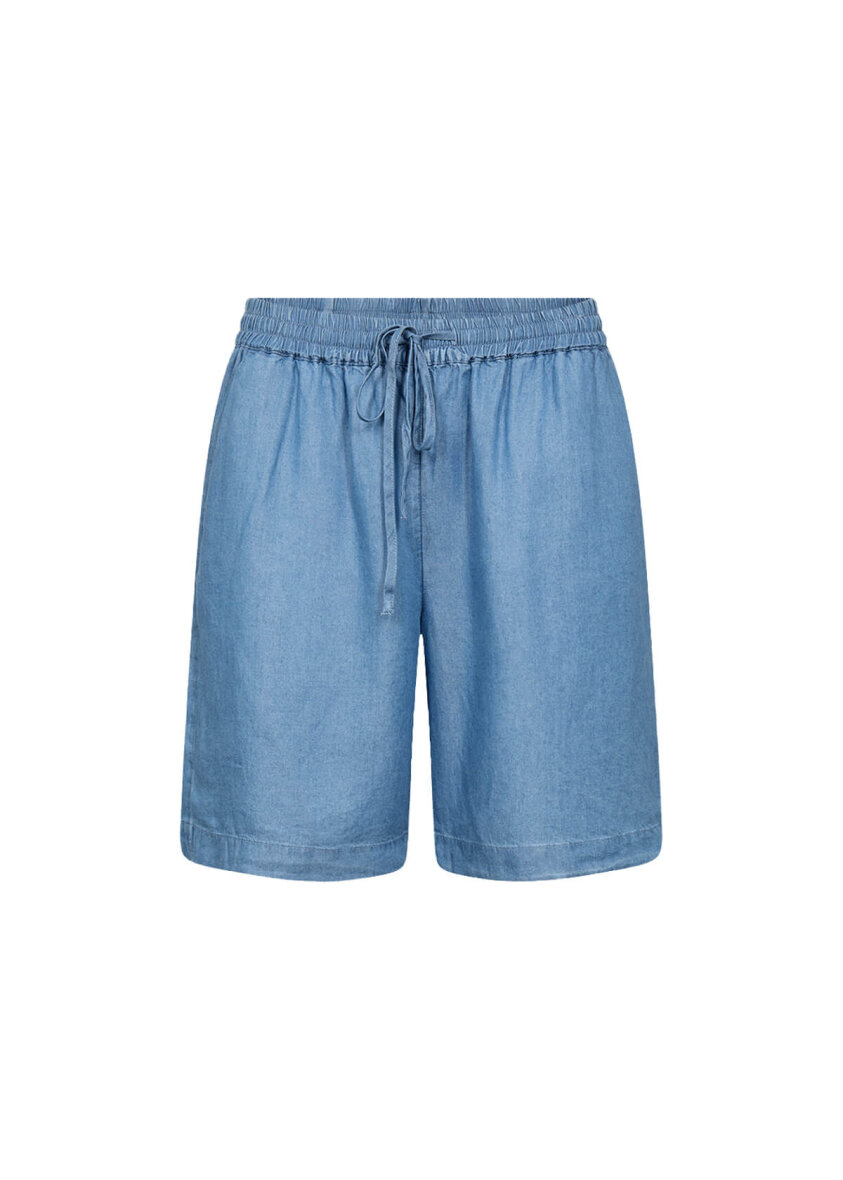 Soyaconcept shorts i en tidsløst medium blå farve. Shortsene er med elastik i taljen samt bindebånd, så man nemt kan justere efter behov.