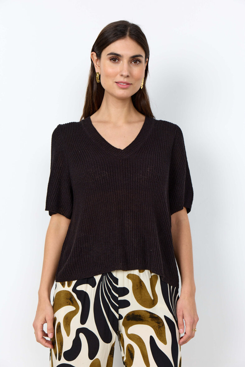 Soyaconcept strik i modellen Felizia. En sort strik i cropped pasform og enkelt vævet design.