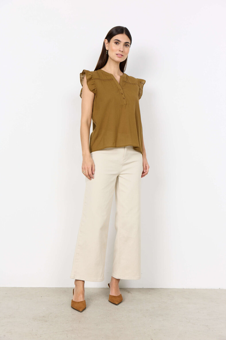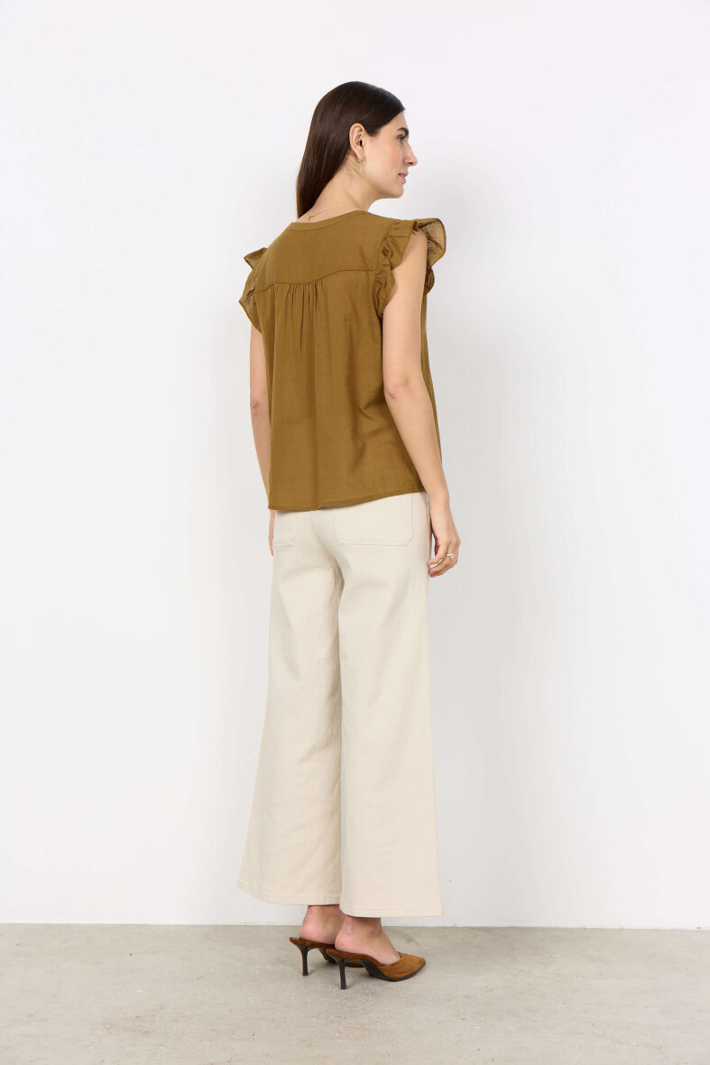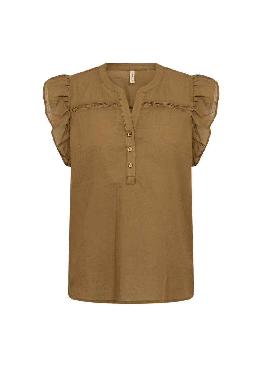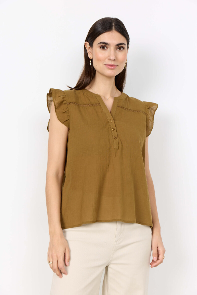 Soyaconcept top i modellen Fabina. Toppen i en moderne sennepsgul er med fine og feminine detaljer, som skaber en elegant sommertop.