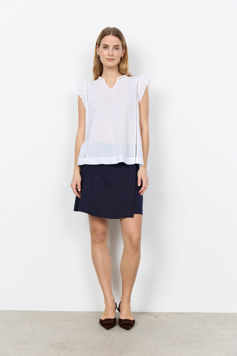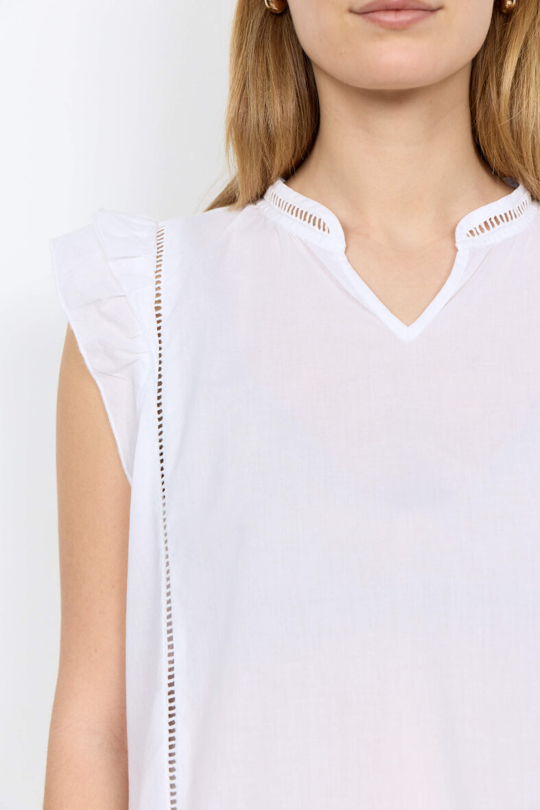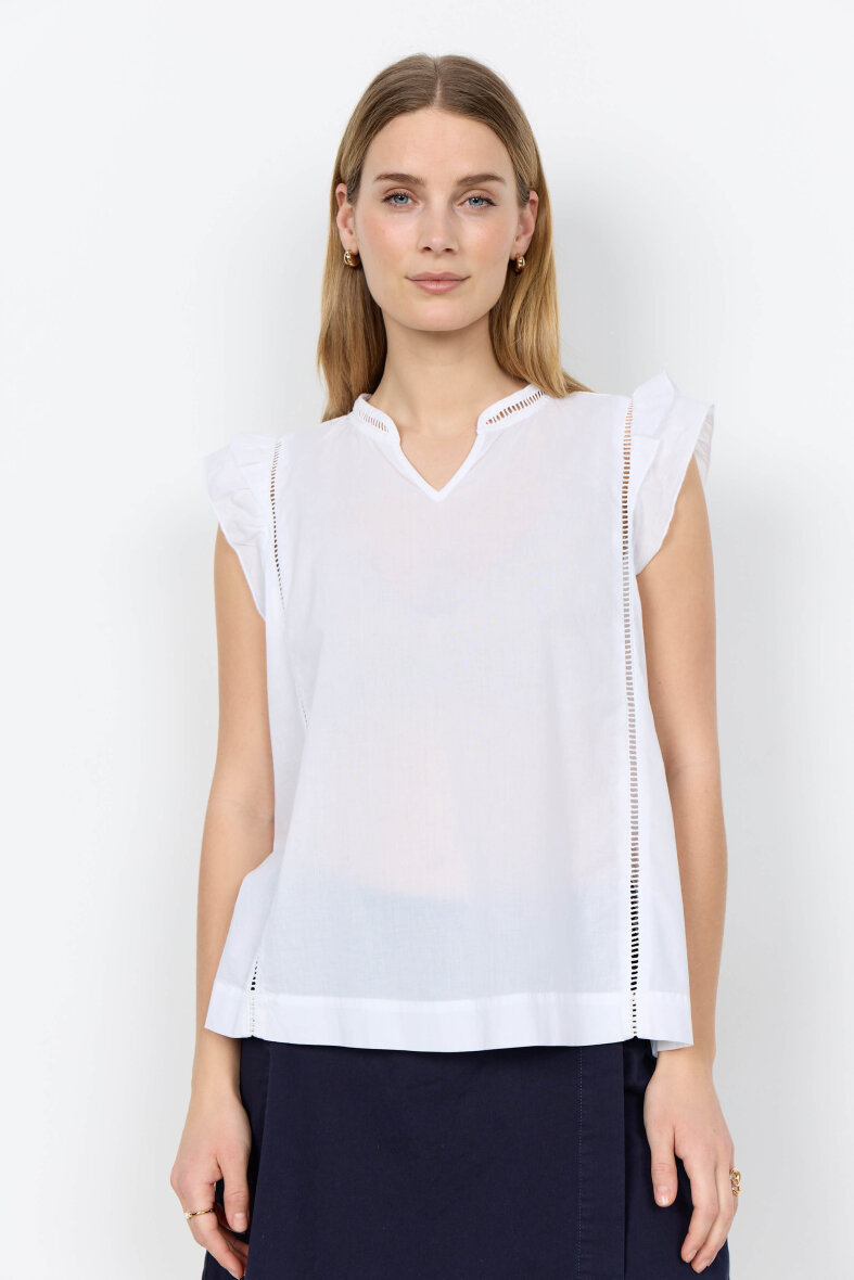 Soyaconcept top i modellen Caliste. Toppen i en enkel hvid farve med fine og feminine detaljer, som skaber en elegant sommertop.