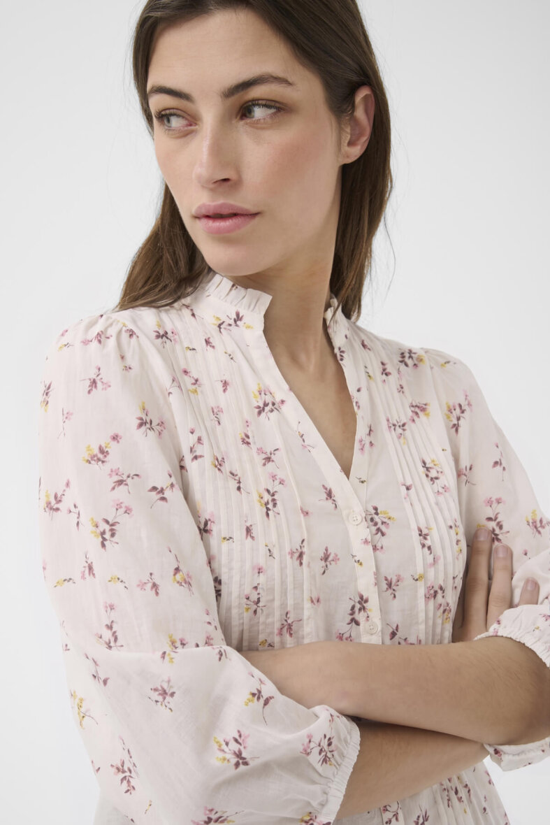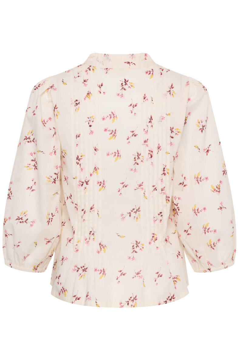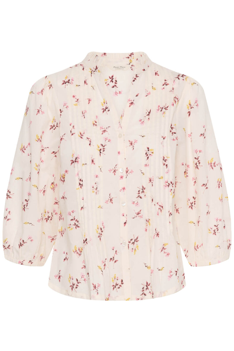 Part Two skjorte i en let og luftig bomuldskvalitet. Skjorten er lavet i en off white farve med et feminint blomster mønster i rosa og gule nuancer.
