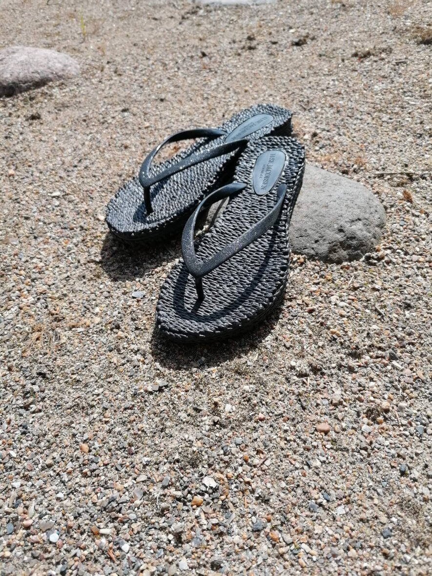 Skønne klip klapper fra Ilse Jacobsen med glitter på tåstropperne. Perfekt til en dag på stranden eller en spadsere tur.