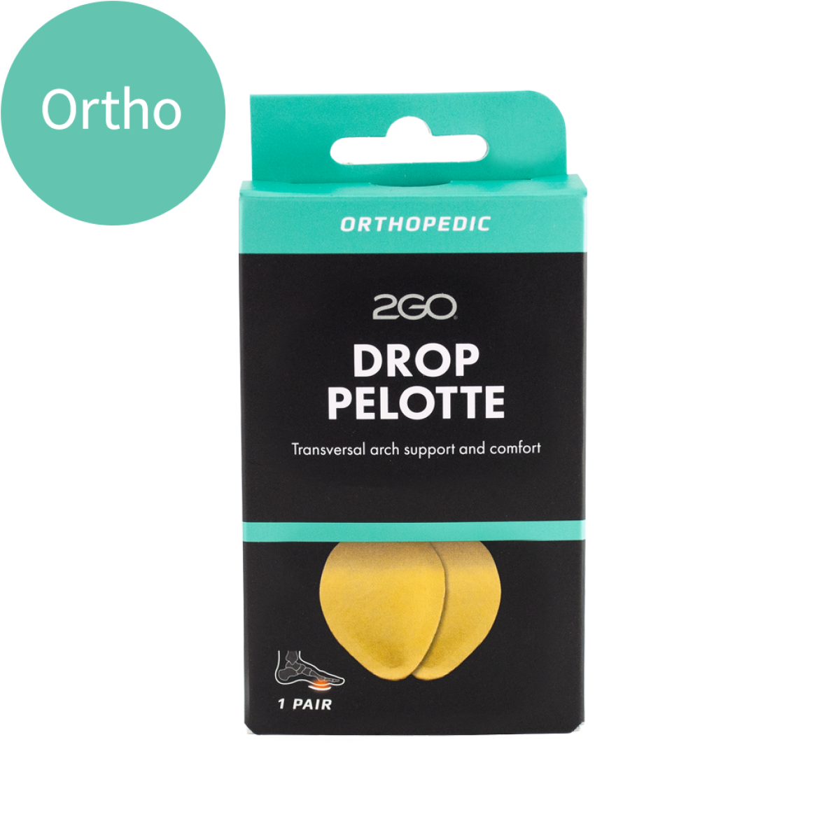 2GO Drop Pelotte er et indlæg i latex med overside af ægte vegetabilsk garvet læser. Giver støtte og aflastning til mellemfoden. Selvklæbende.