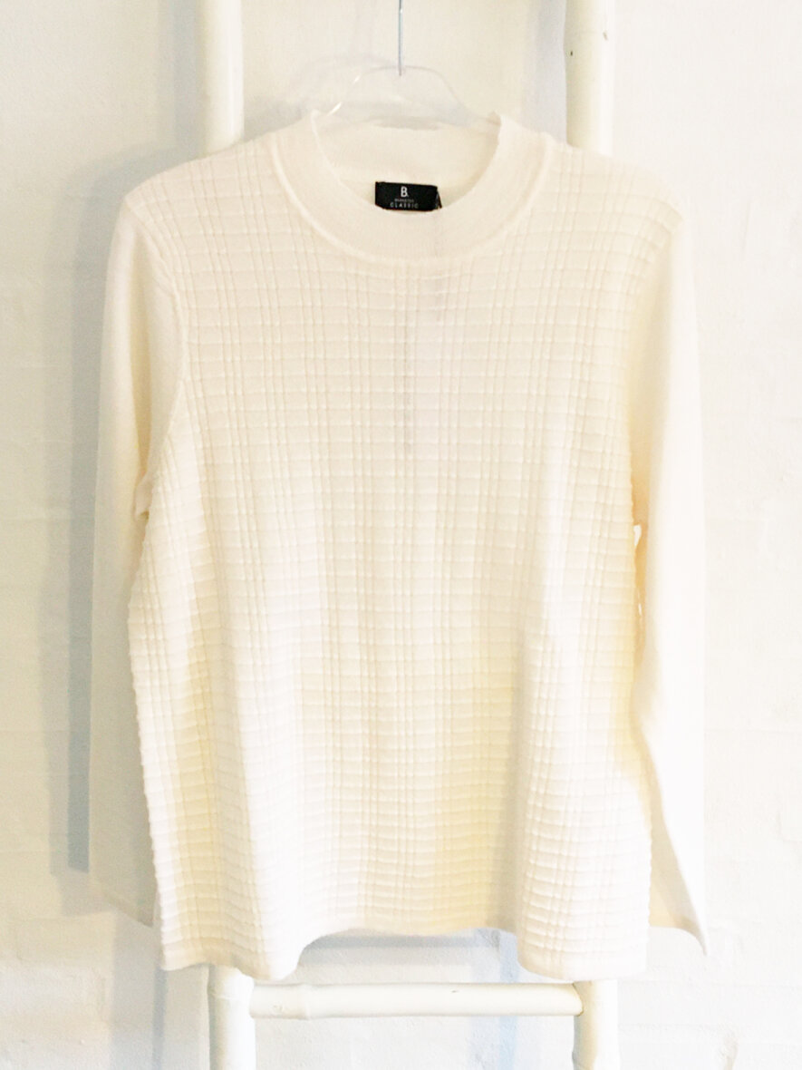 Lækker og varm strik fra Brandtex med høj krave og rund hals. Lange ærmer. Mønsterstrik foran.